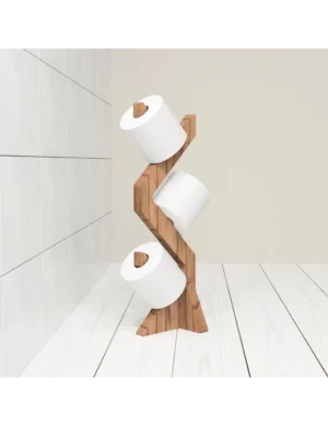 Handmade Rustic Wooden Toilet Roll Holder – Freestanding TP Stand by Krafted Kingdom