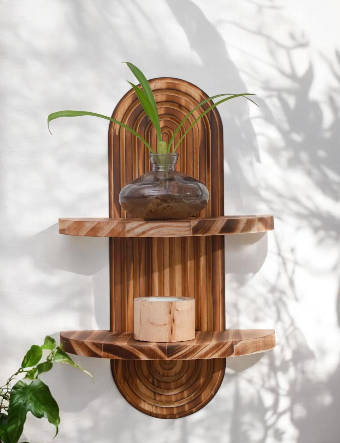 Handmade Boho Rustic Wooden Wall Shelf – Arched Display for Plants by Krafted Kingdom