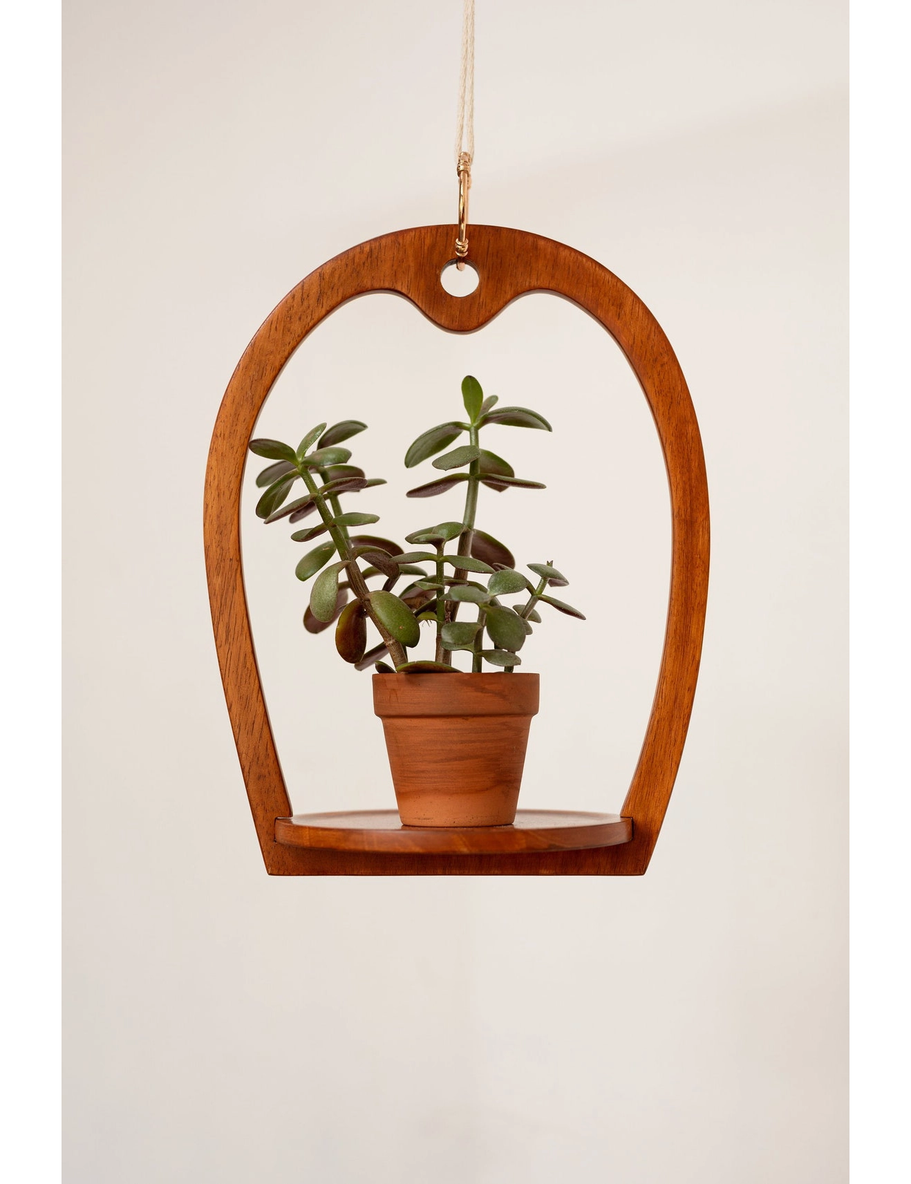 Add a touch of timeless charm to your home with the Classic Retro Wooden Plant Hanger by Krafted Kingdom. This minimalist hanging shelf lets your plants take center stage while offering a warm, teak-inspired wood tone that blends effortlessly with any décor style—from mid-century modern to vintage chic.