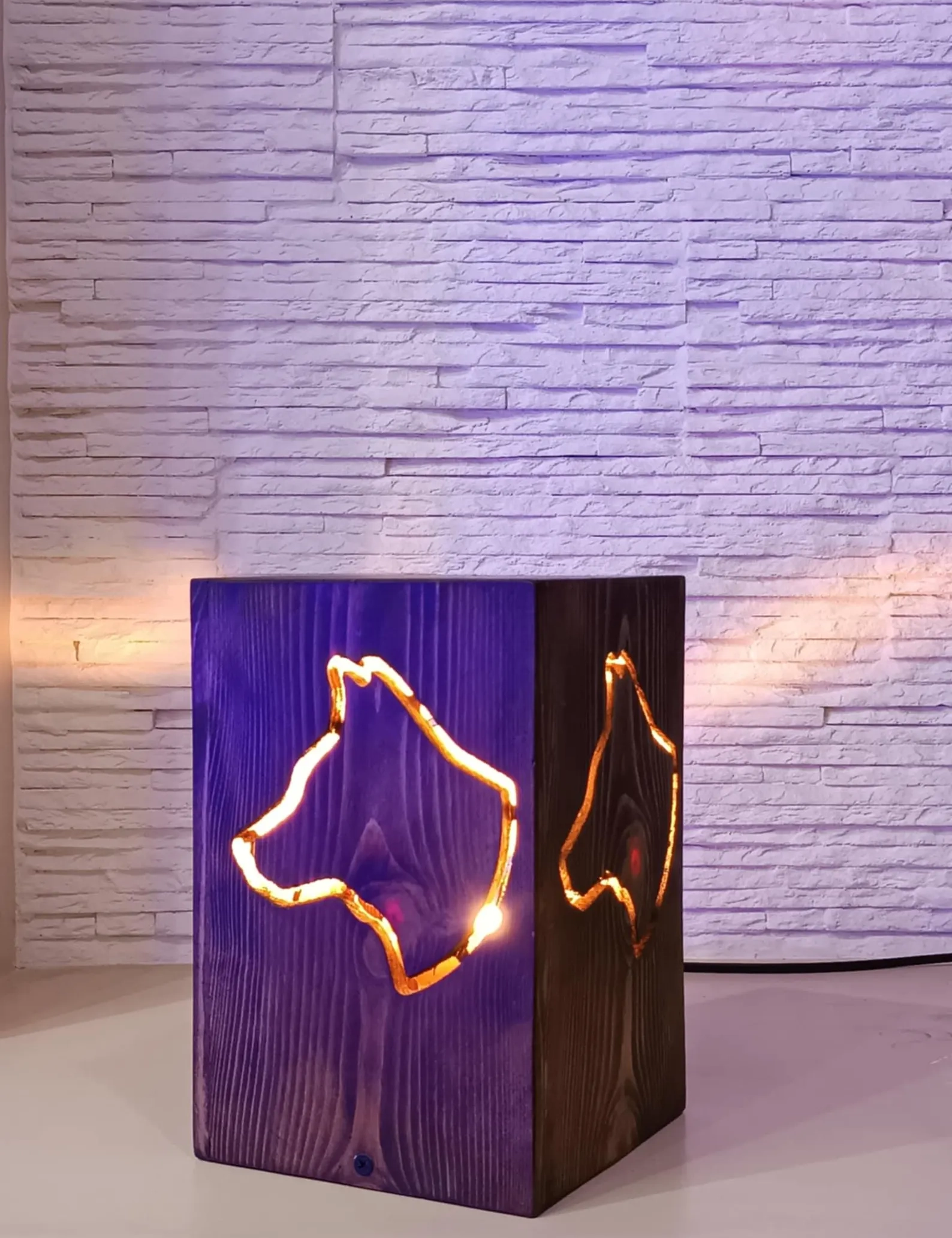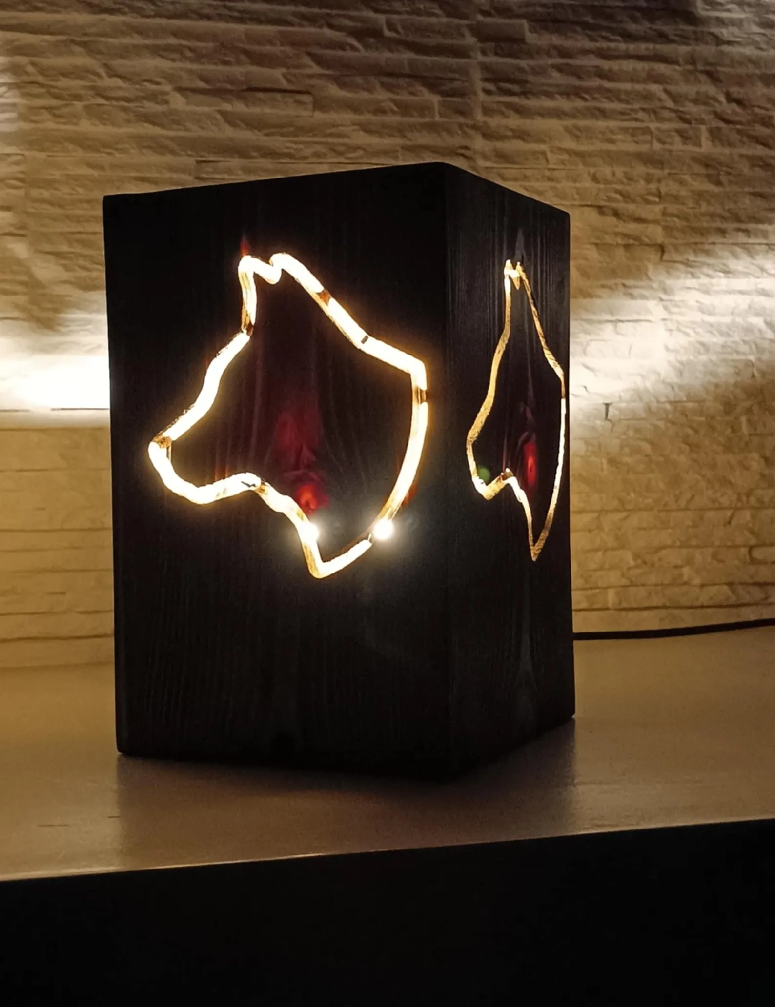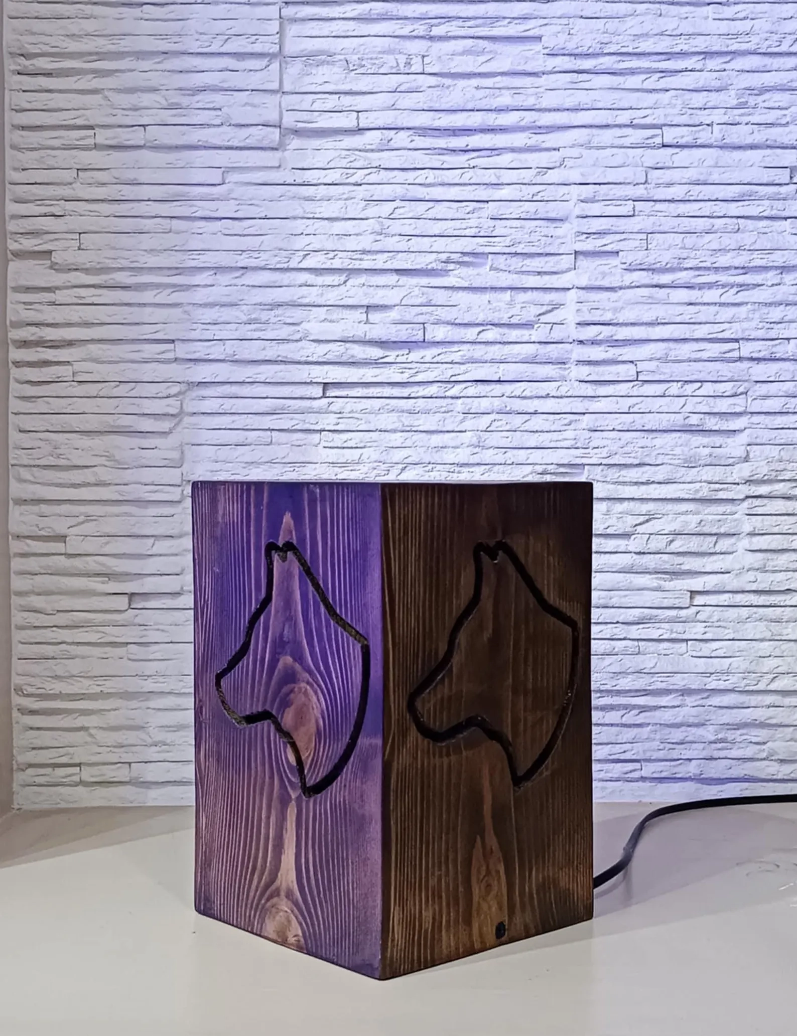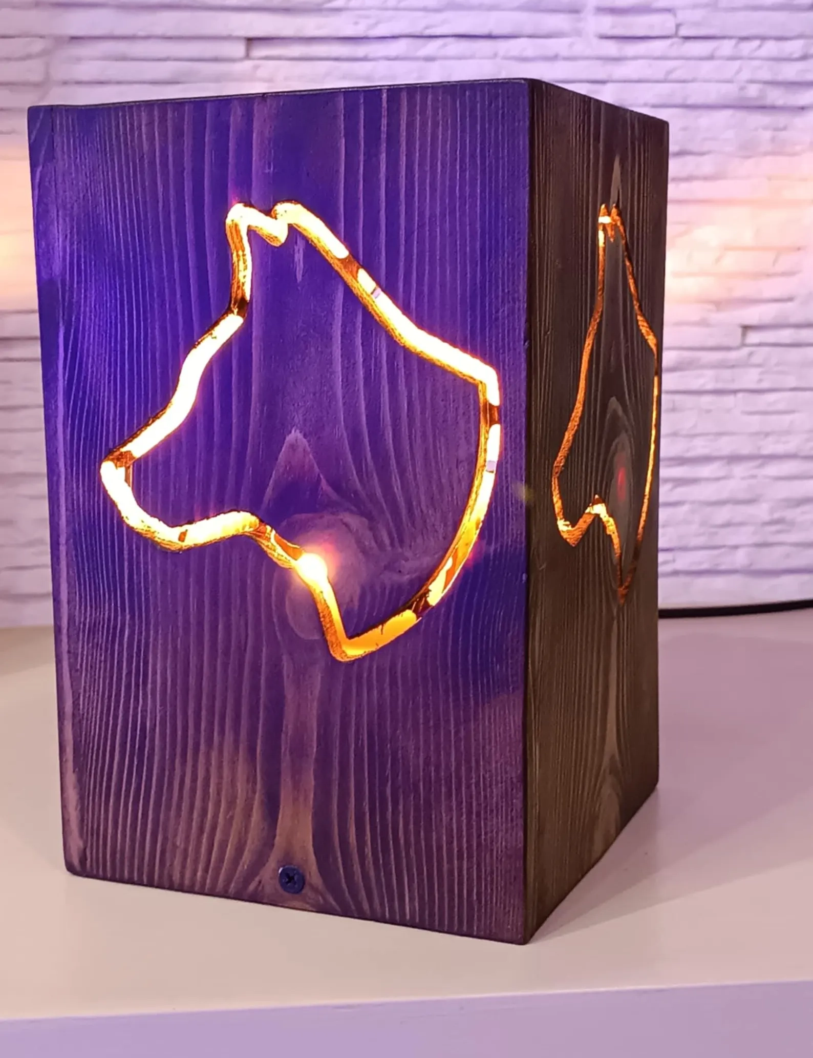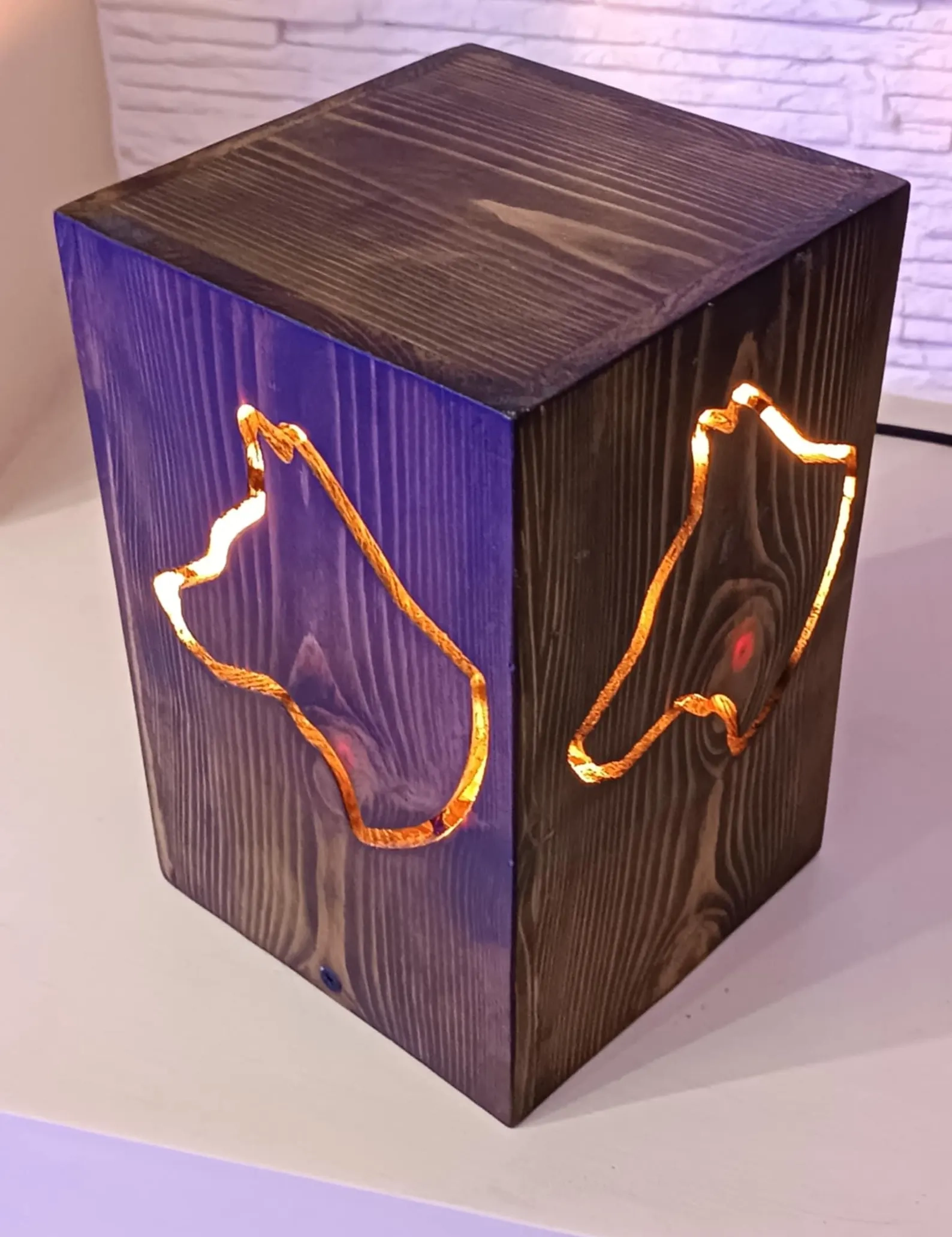 This compact wooden lamp casts a soft ambient glow, creating a calming atmosphere ideal for bedrooms, living rooms, or offices. Lightweight and durable, it easily fits into Scandinavian, farmhouse or boho interiors. Whether you’re a dog lover, a fan of handcrafted items, or seeking a creative lighting solution, this small table lamp is both functional and artistic.