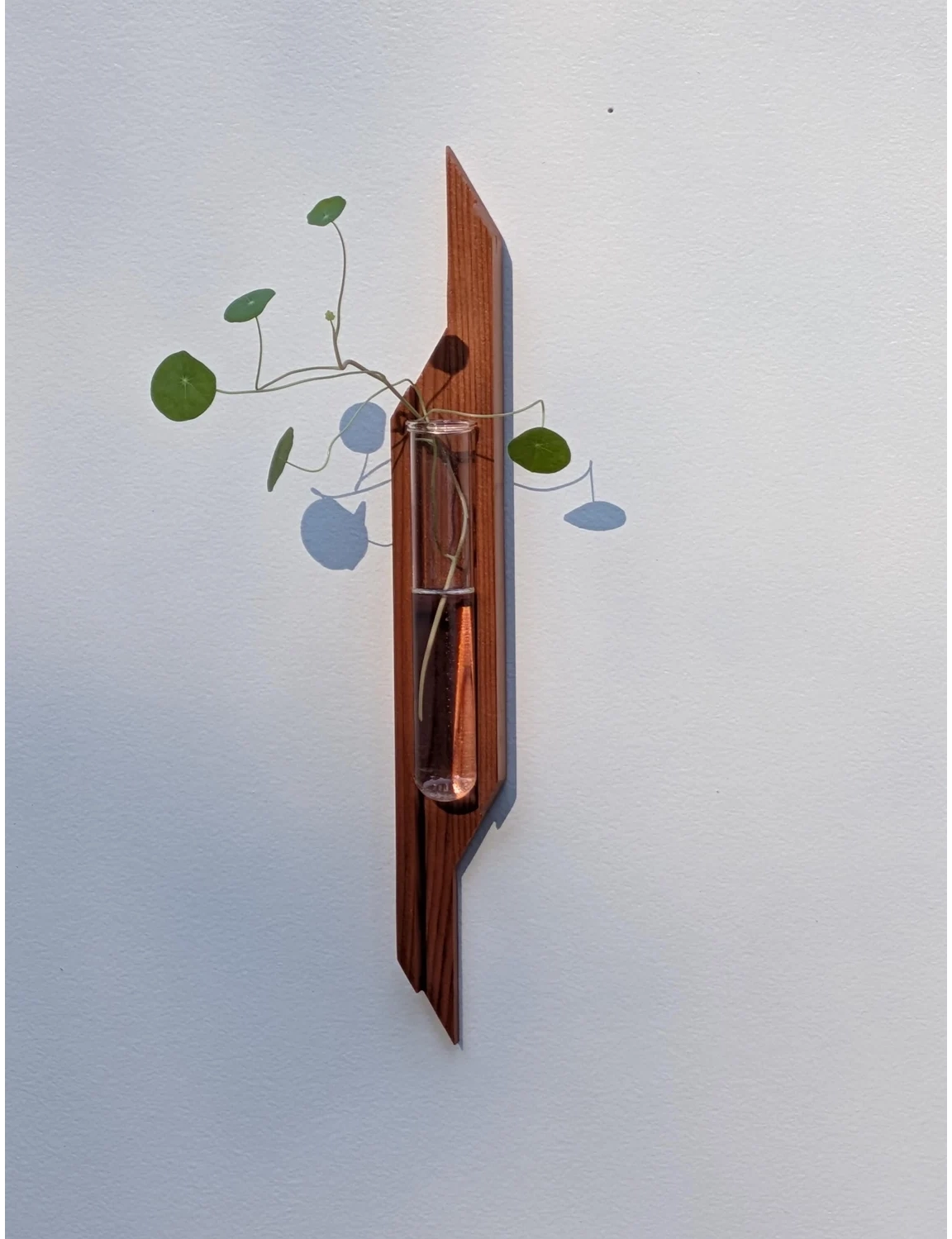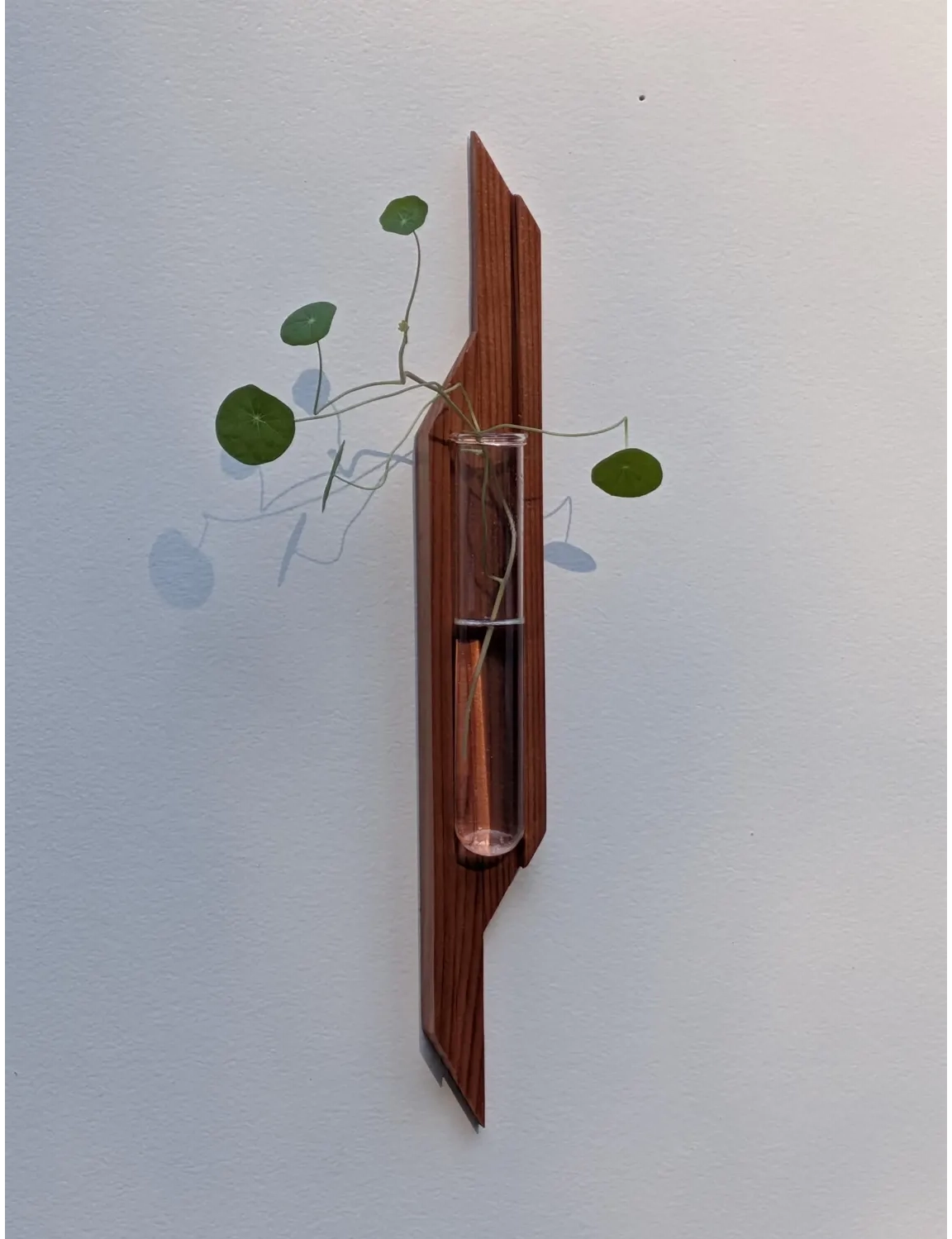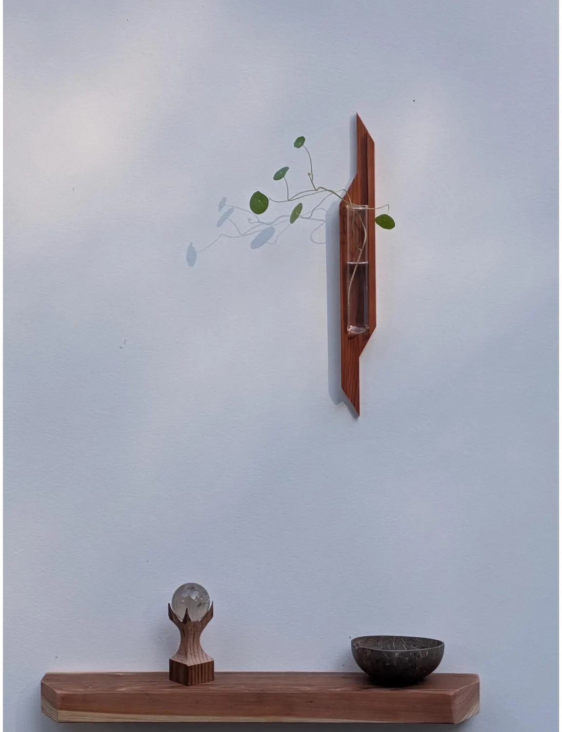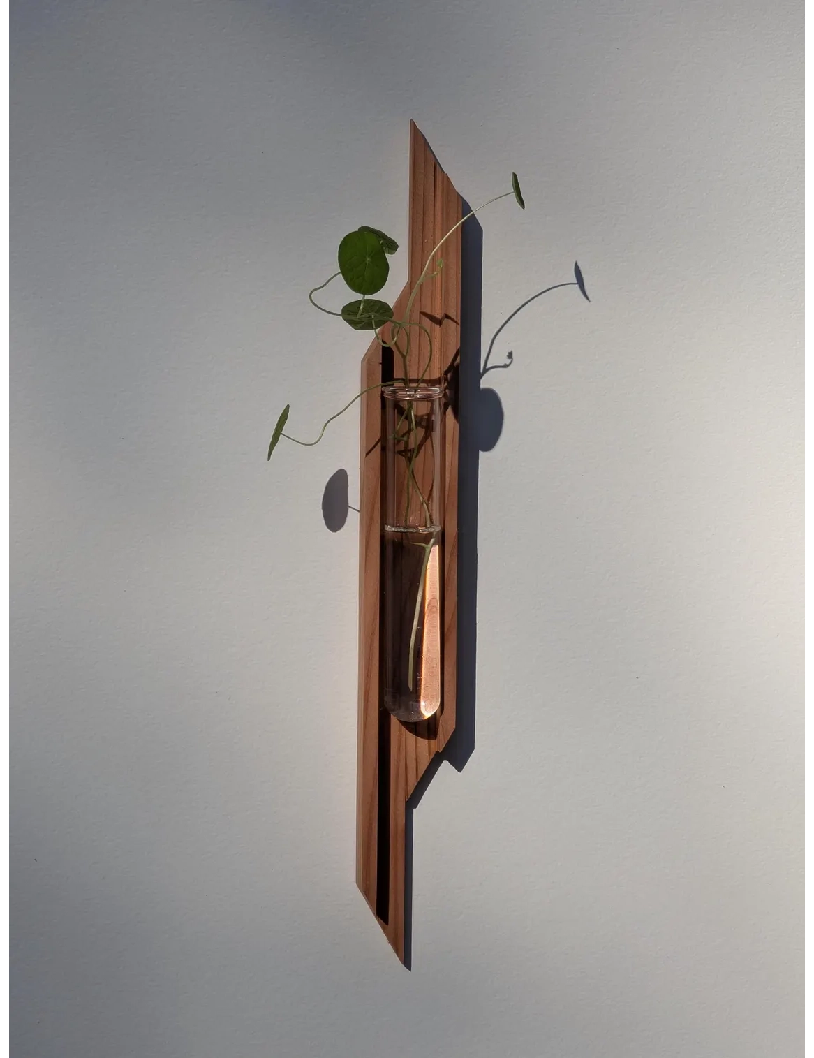Add a refined, nature-inspired accent to your space with this handmade Redwood Wall Vase by Krafted Kingdom. Thoughtfully crafted from locally sourced redwood and paired with a slim, delicate glass tube, this wall-mounted vase serves beautifully as a propagation station or a minimalist floral display.