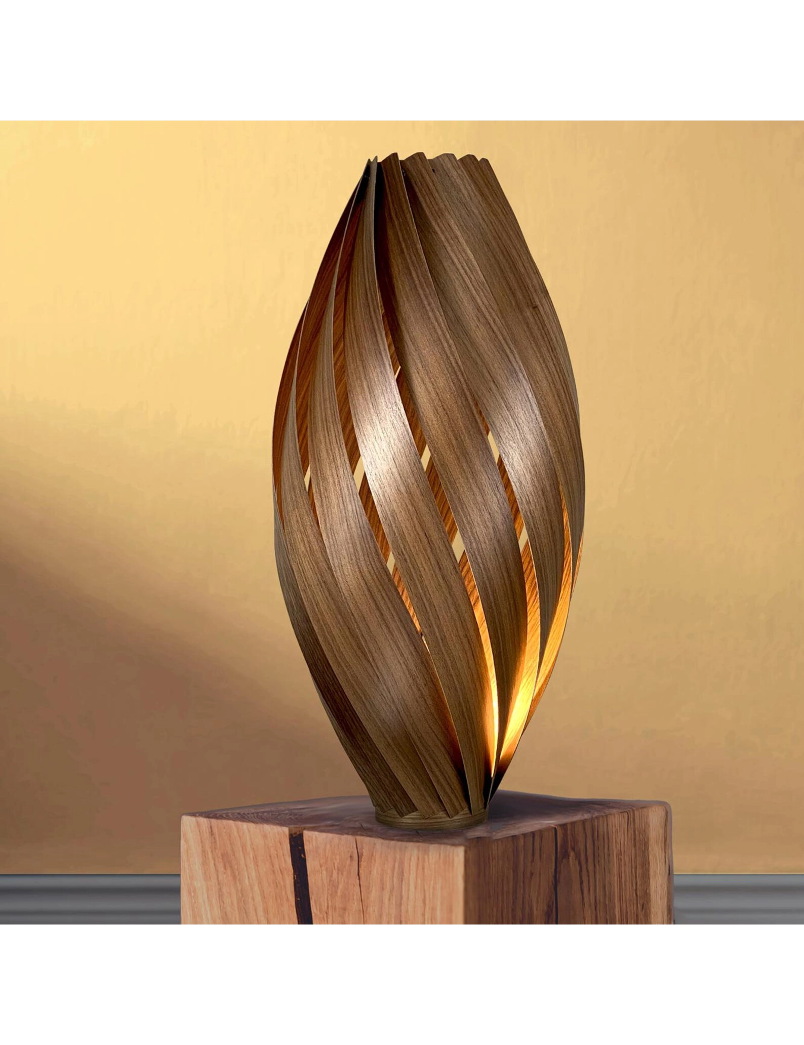 The lamp’s design allows subtle shape adjustment—gently press or pull to alter the silhouette. Stand it tall and narrow for a soft, focused glow or shift it lower and rounder for enhanced ambient lighting. Every detail reflects artisanal care, offering both functional lighting and a unique, handcrafted statement piece.