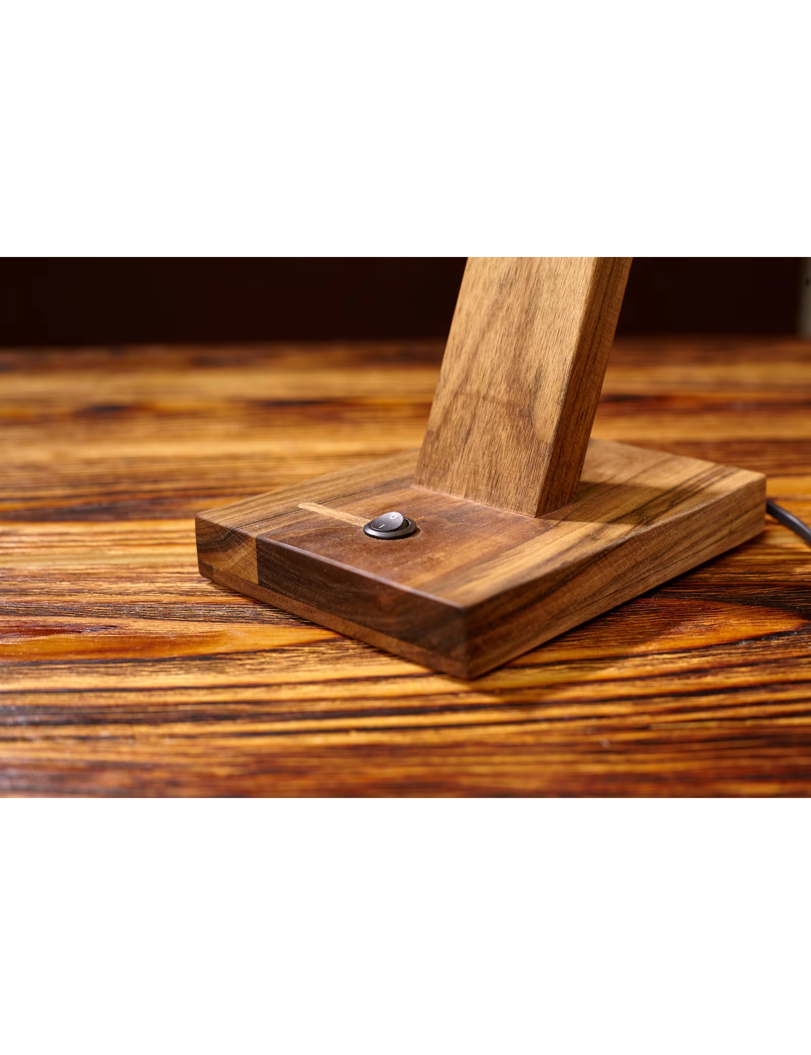 Illuminate your space with timeless style using Krafted Kingdom’s handcrafted Wooden LED Table Lamp. Made from responsibly sourced oak or walnut, each lamp is carefully shaped and polished by skilled artisans, then finished with premium wood oil to enhance the natural grain and texture. Resin-filled knots add a unique character, celebrating the raw beauty of wood.