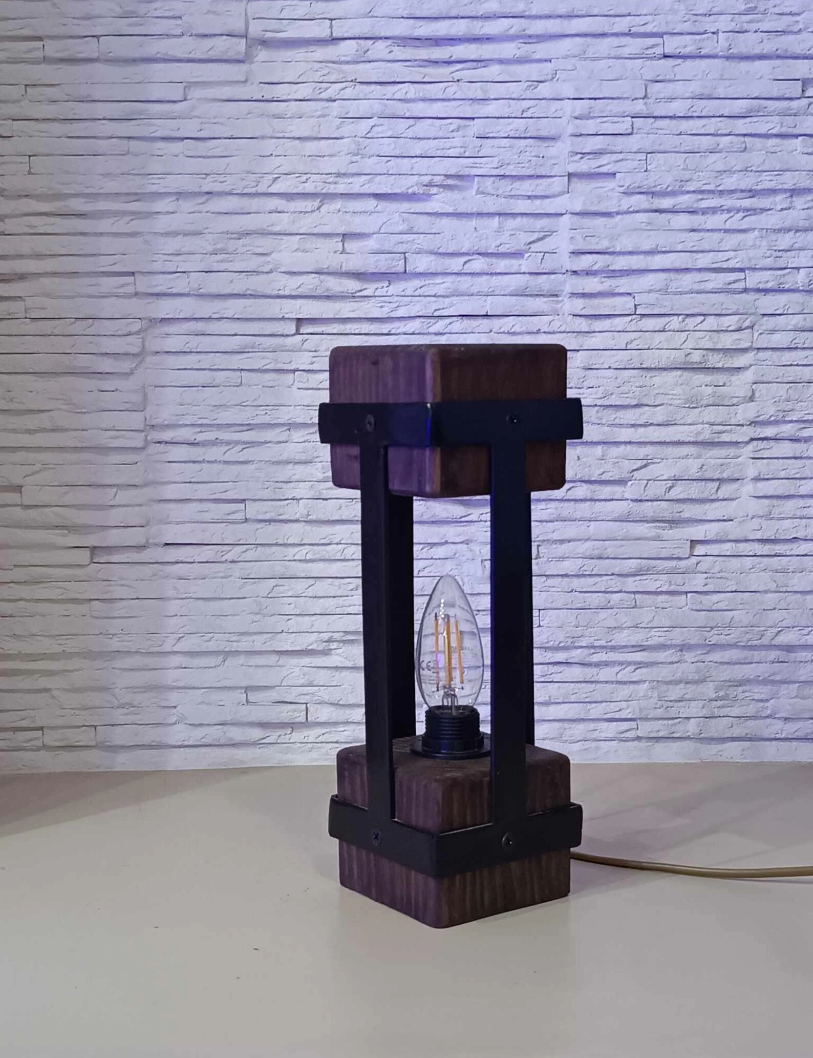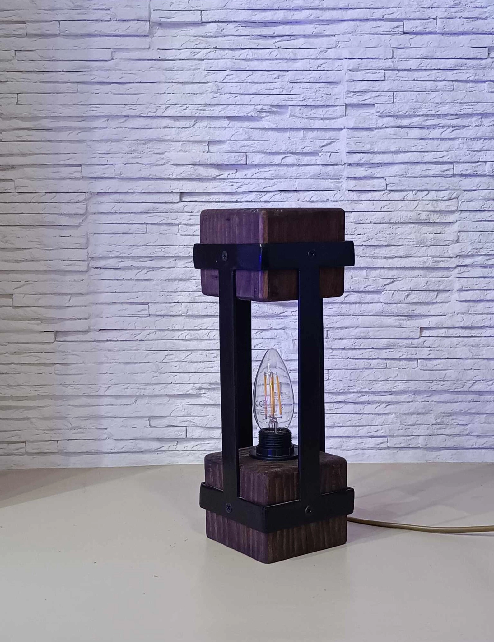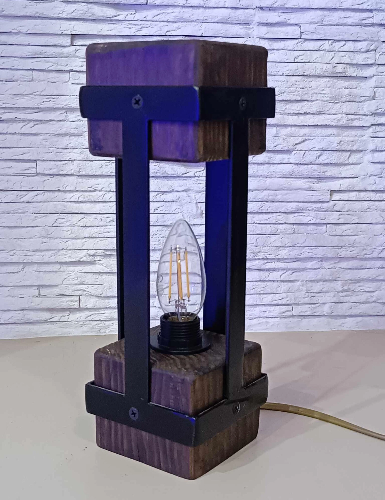 Add a touch of timeless charm with this handmade small table lamp by Krafted Kingdom, featuring a unique blend of natural wood and industrial metal. Its compact, geometric design brings rustic warmth and modern elegance to any interior space, from bedside tables to office desks.