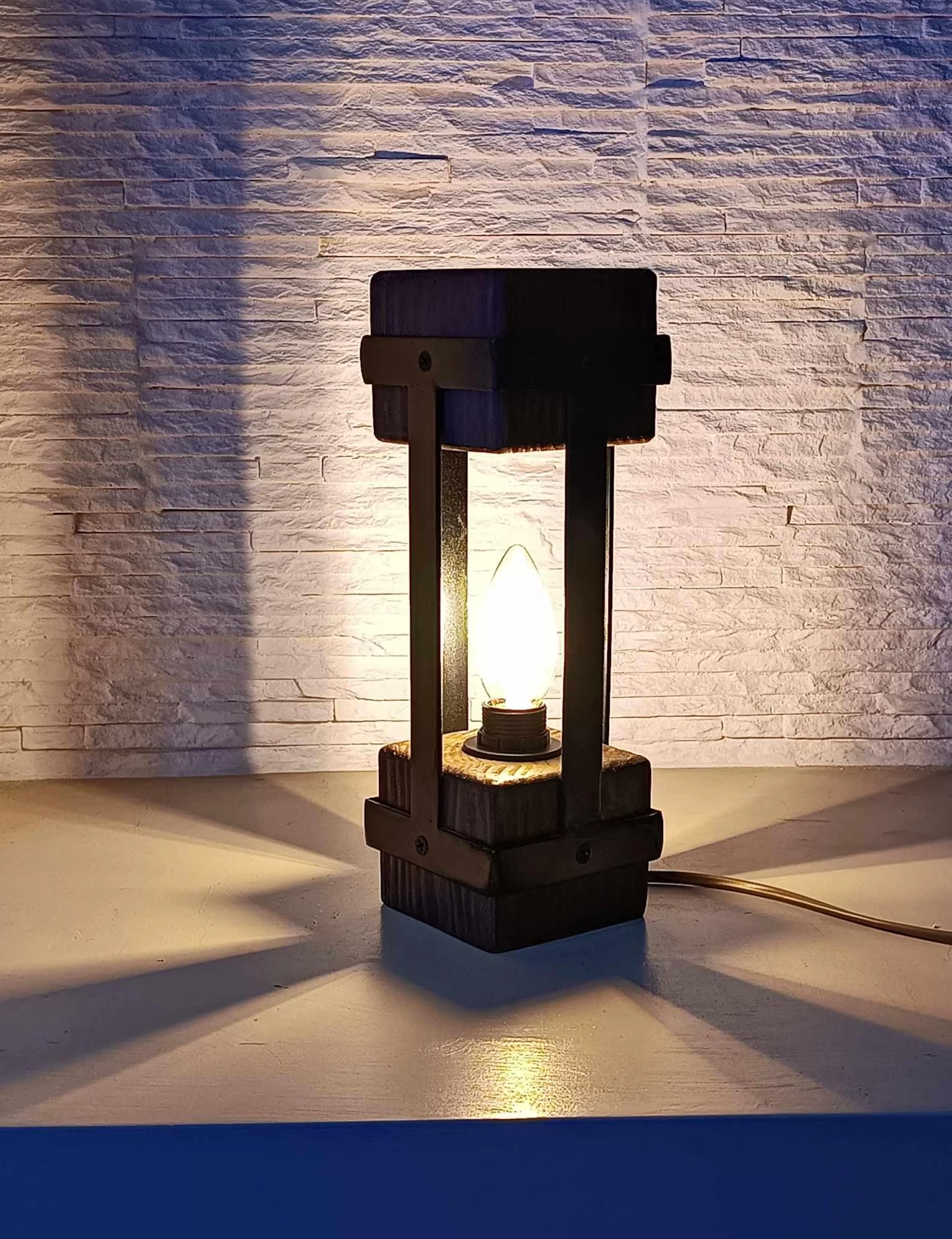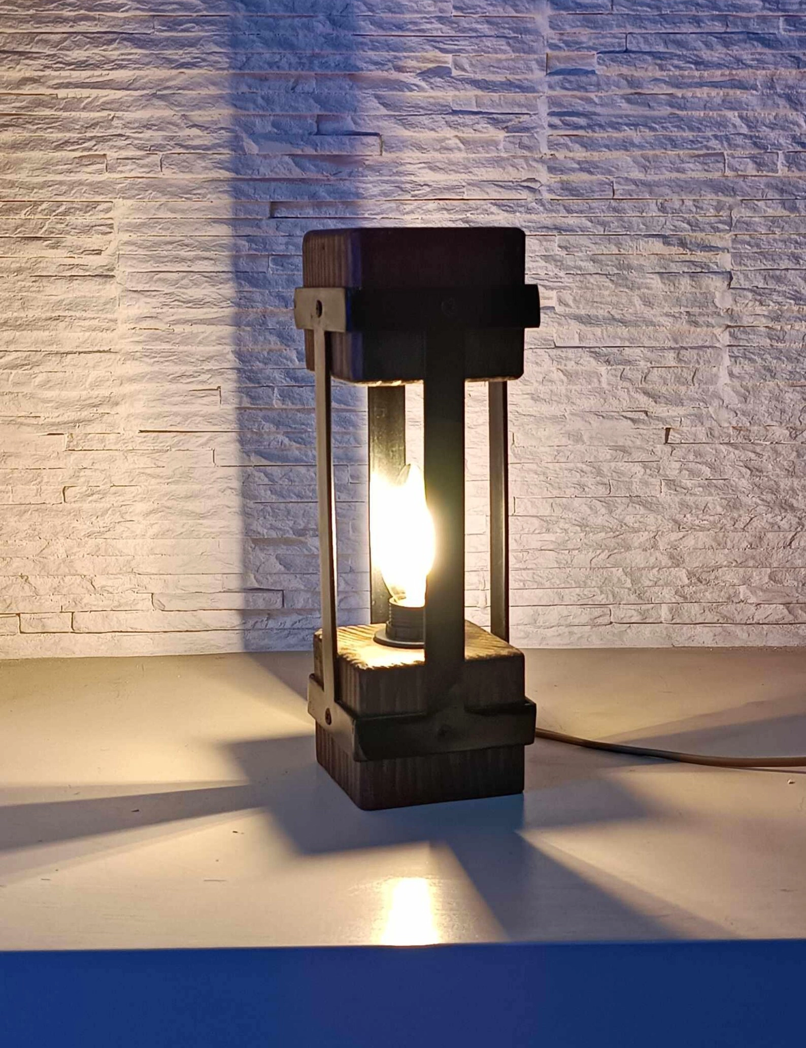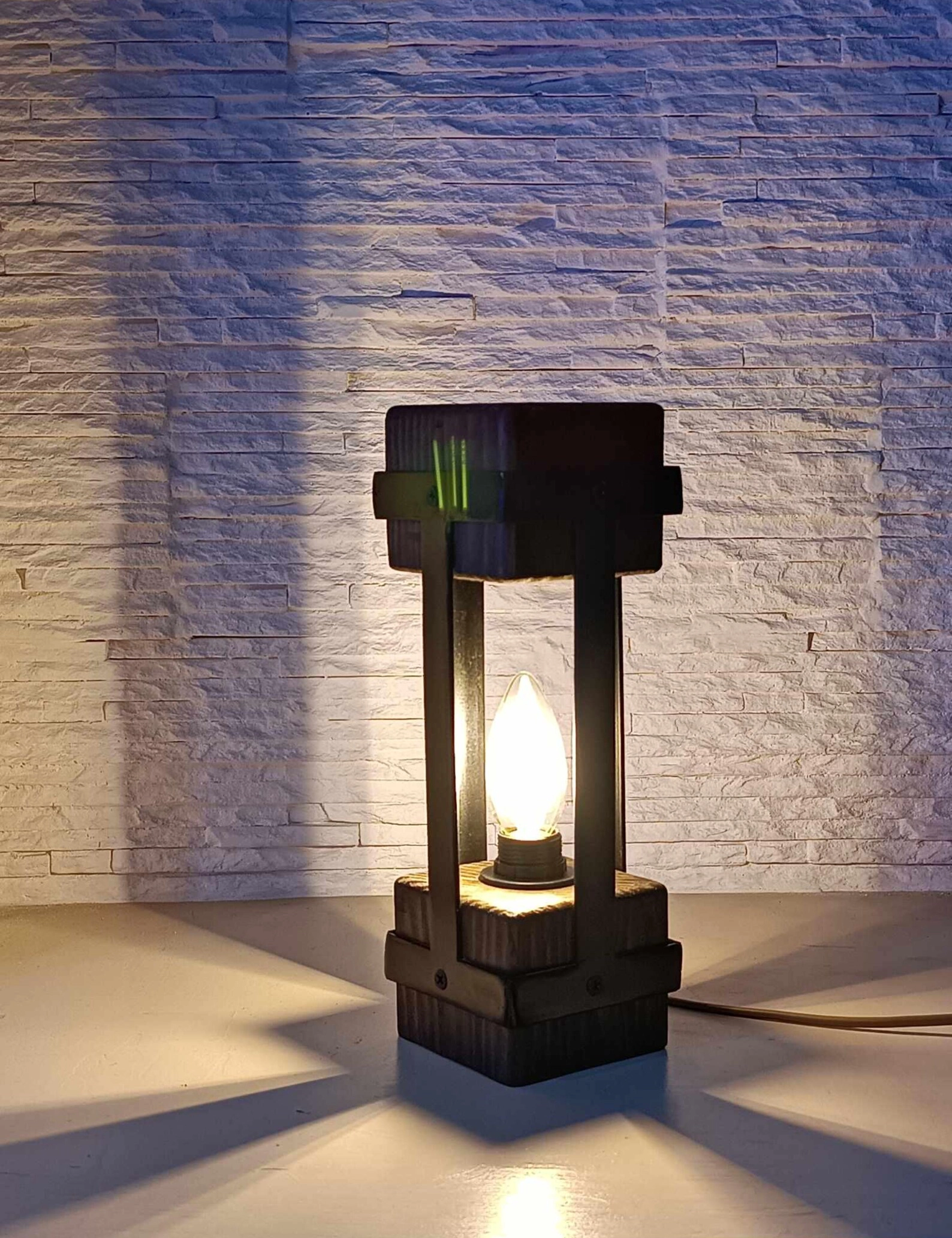 Add a touch of timeless charm with this handmade small table lamp by Krafted Kingdom, featuring a unique blend of natural wood and industrial metal. Its compact, geometric design brings rustic warmth and modern elegance to any interior space, from bedside tables to office desks.