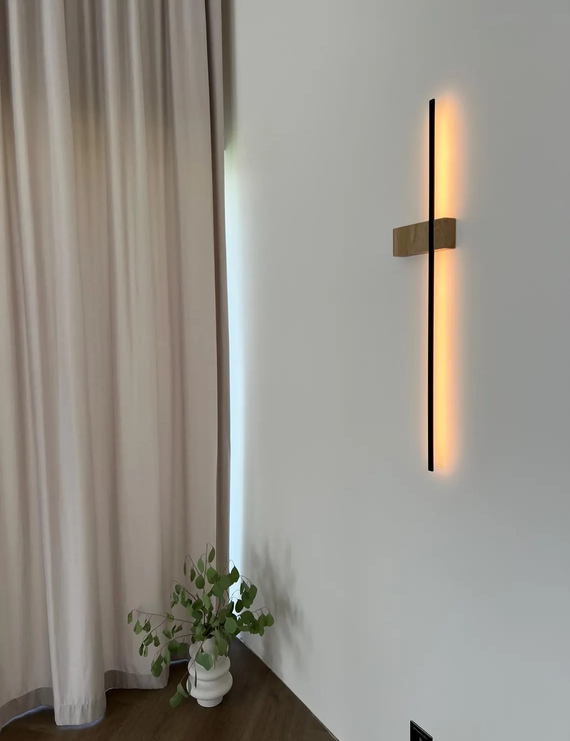 Crafted from premium solid oak, this handmade LED wall lamp offers a unique balance of natural elegance and contemporary design. It’s ideal for modern homes, offices, or hospitality interiors where subtle yet stylish lighting is key.
