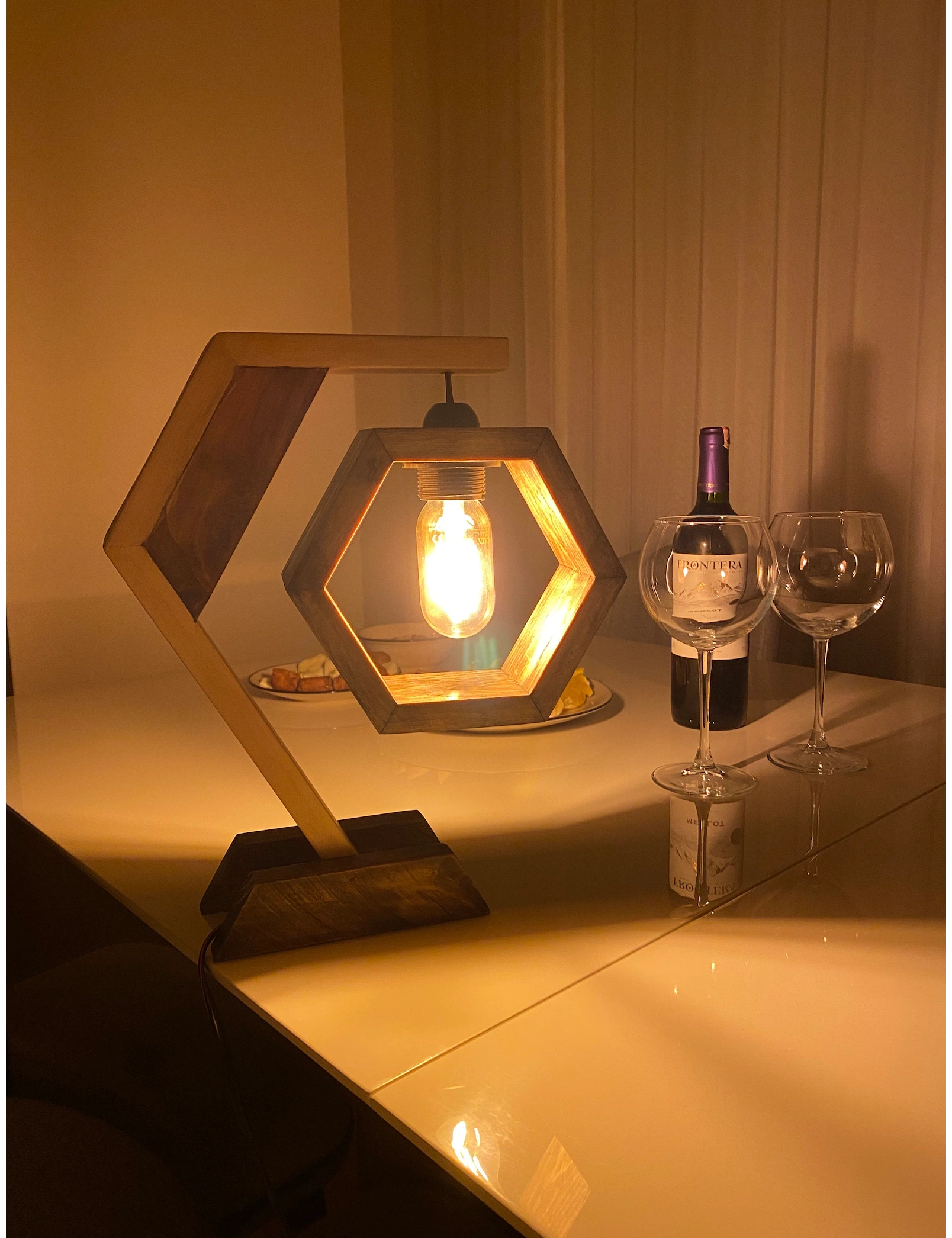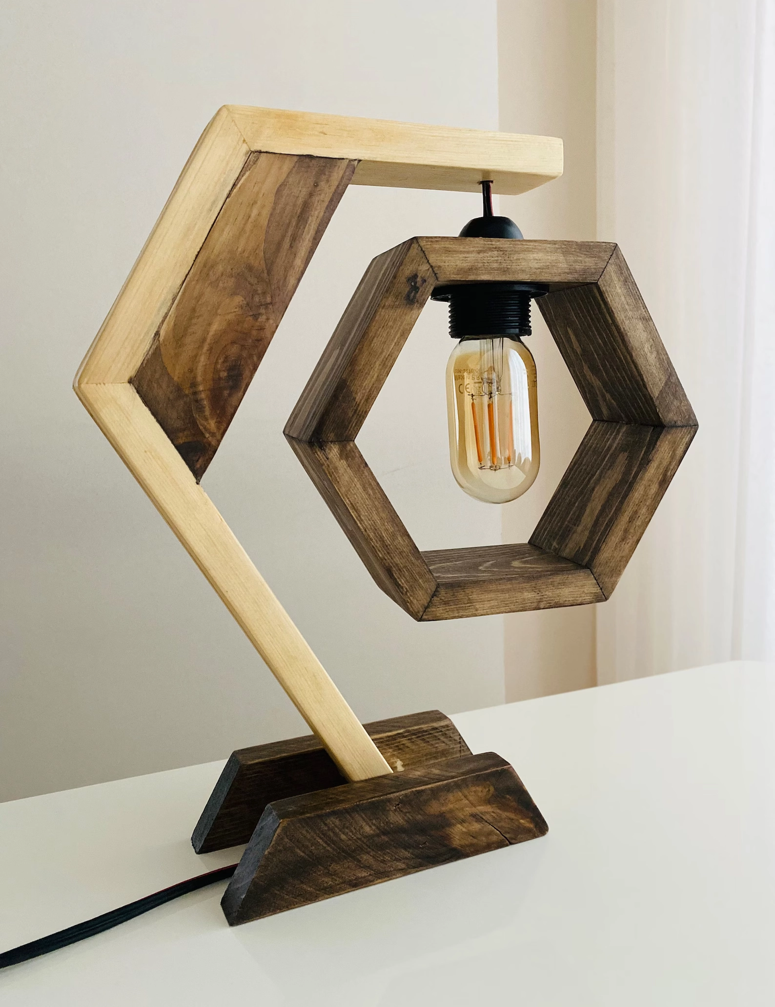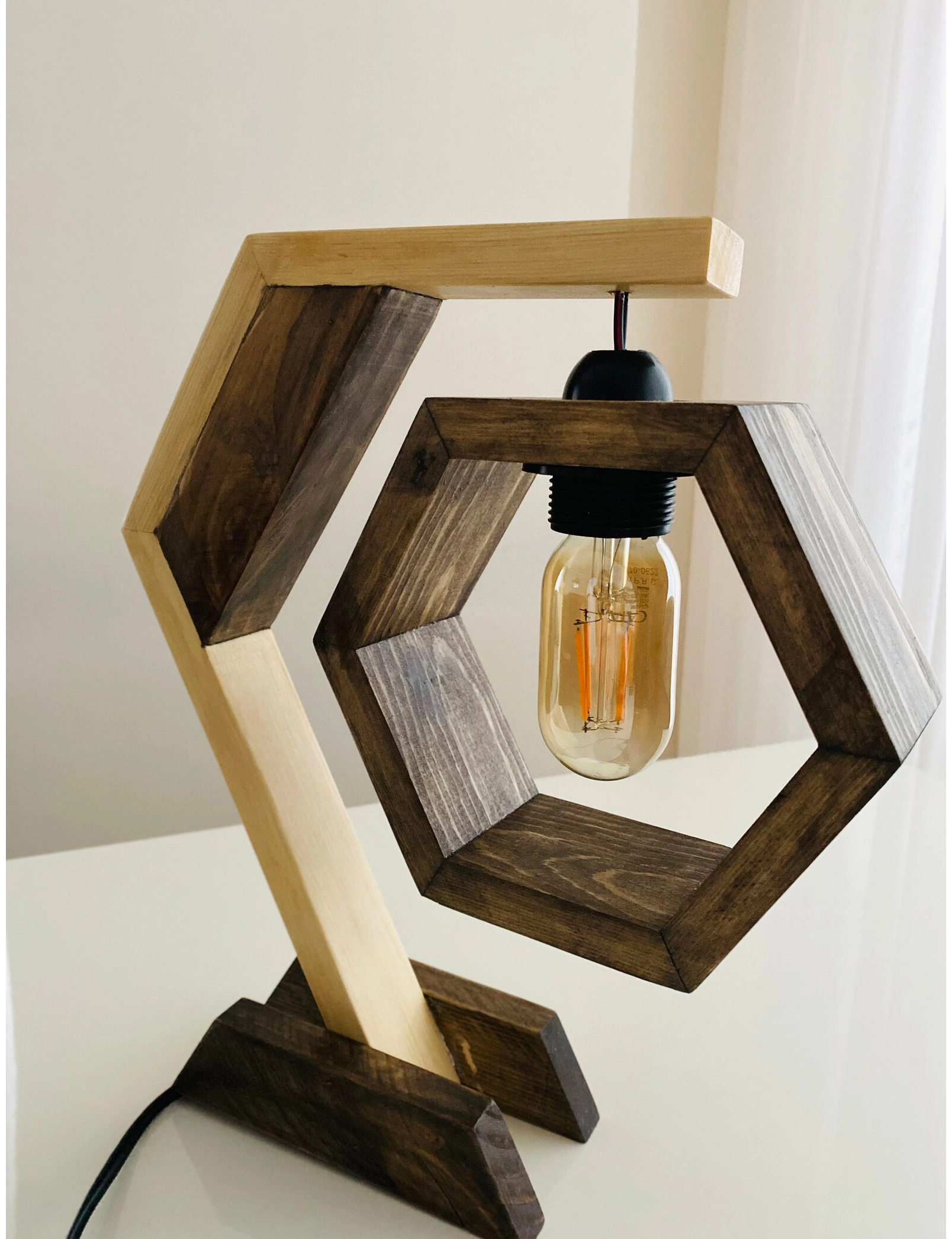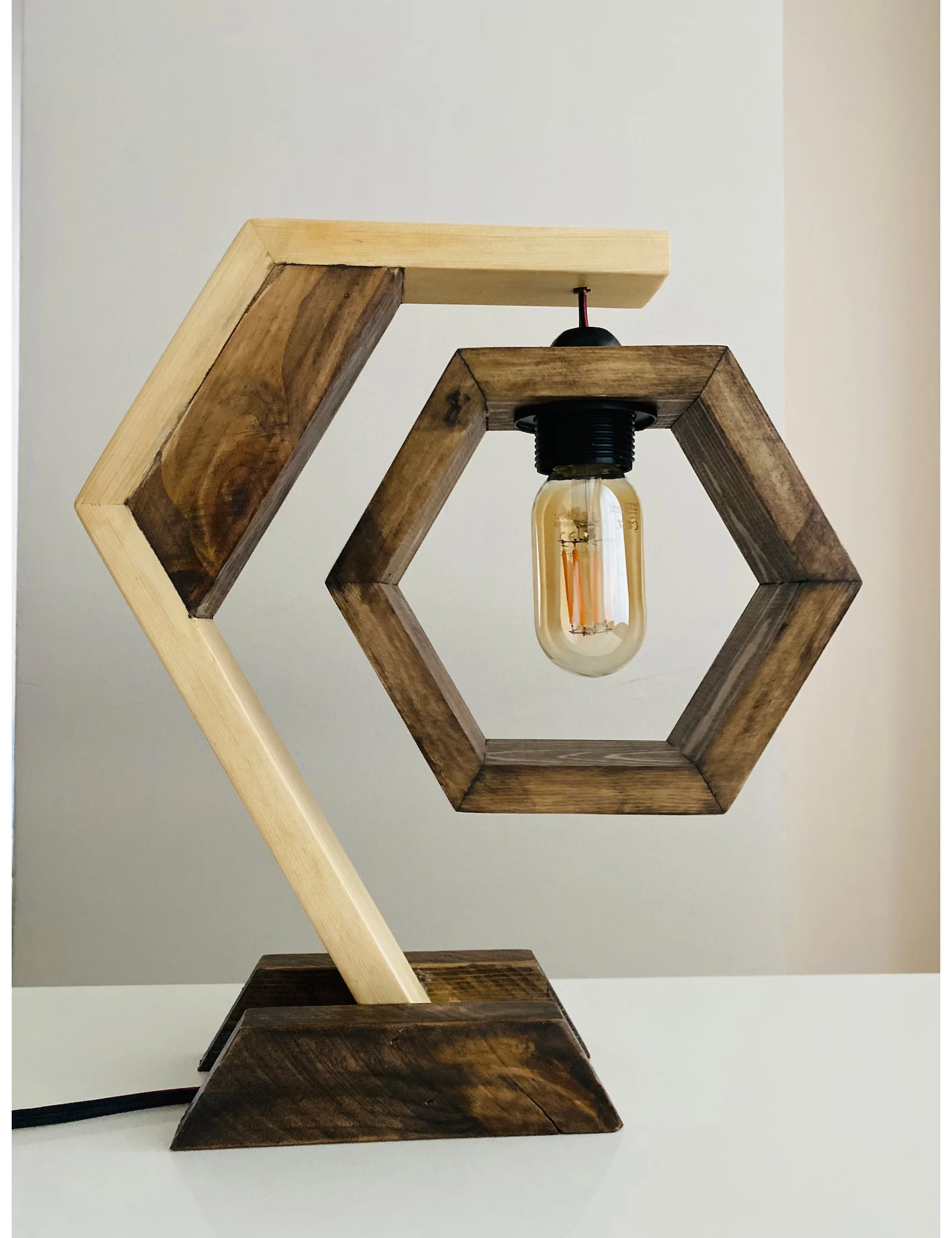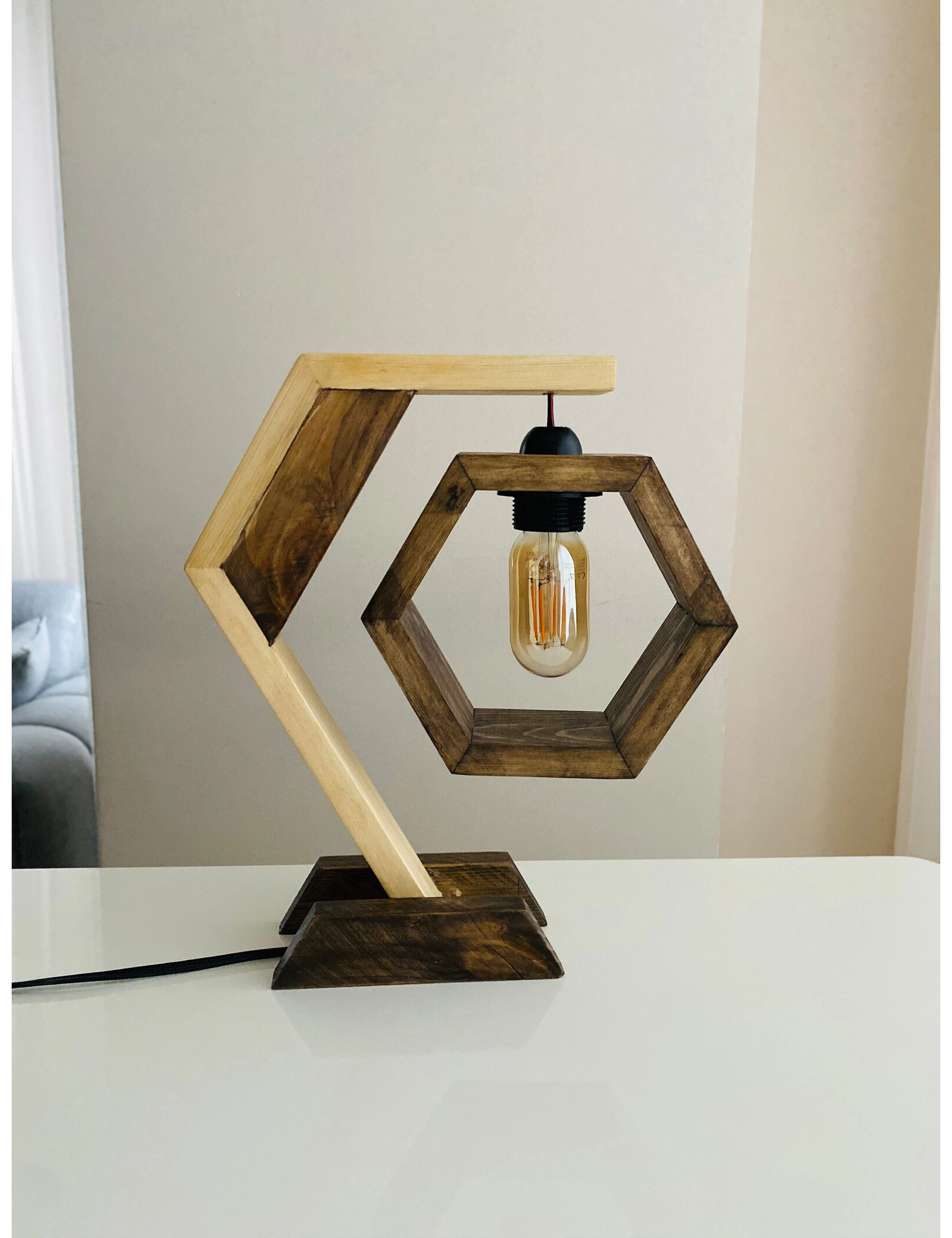 Transform your living space with the warm, inviting glow of our handmade hexagon wooden table lamp. Crafted from sustainably sourced pine, its geometric design balances rustic craftsmanship with modern aesthetics, making it an ideal centerpiece for bedrooms, living rooms, or office desks.