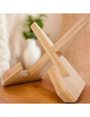 Each piece is handmade, highlighting the unique wood grain and warm texture of natural materials. The clear glass tube provides the perfect vessel for rooting or displaying fresh greenery, making it an ideal accent for desks, shelves, or bedside tables.