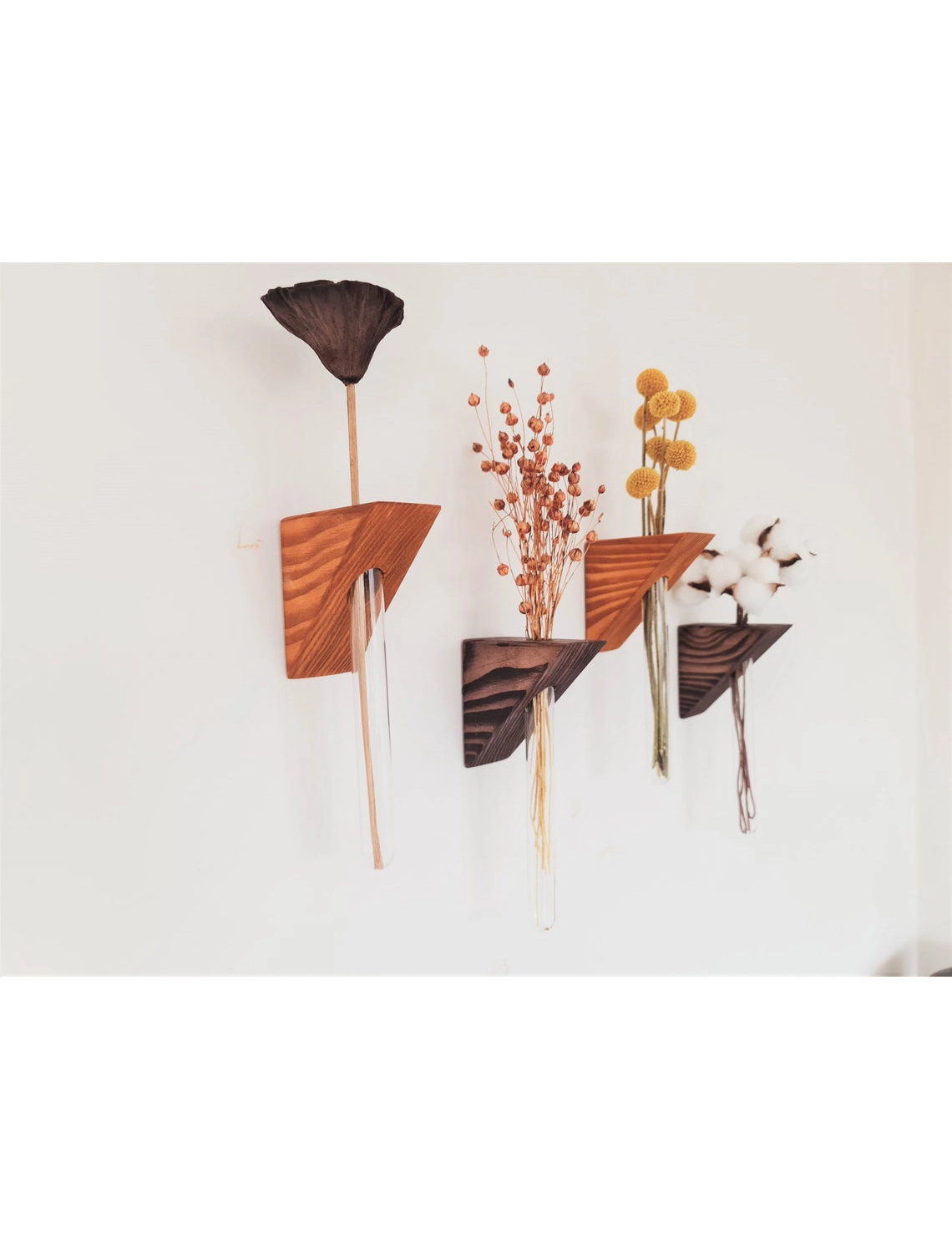 Introduce a touch of natural elegance to your walls with this handcrafted Wooden Propagation Station Set by Krafted Kingdom, your trusted source for handmade home decor. Expertly made from natural pine wood and finished in a blend of Golden Oak and Special Walnut stains, each piece reflects the charm of artisan craftsmanship that defines our brand. Every station includes a sleek glass tube, perfect for displaying air plants, propagating cuttings, or styling with dried florals.