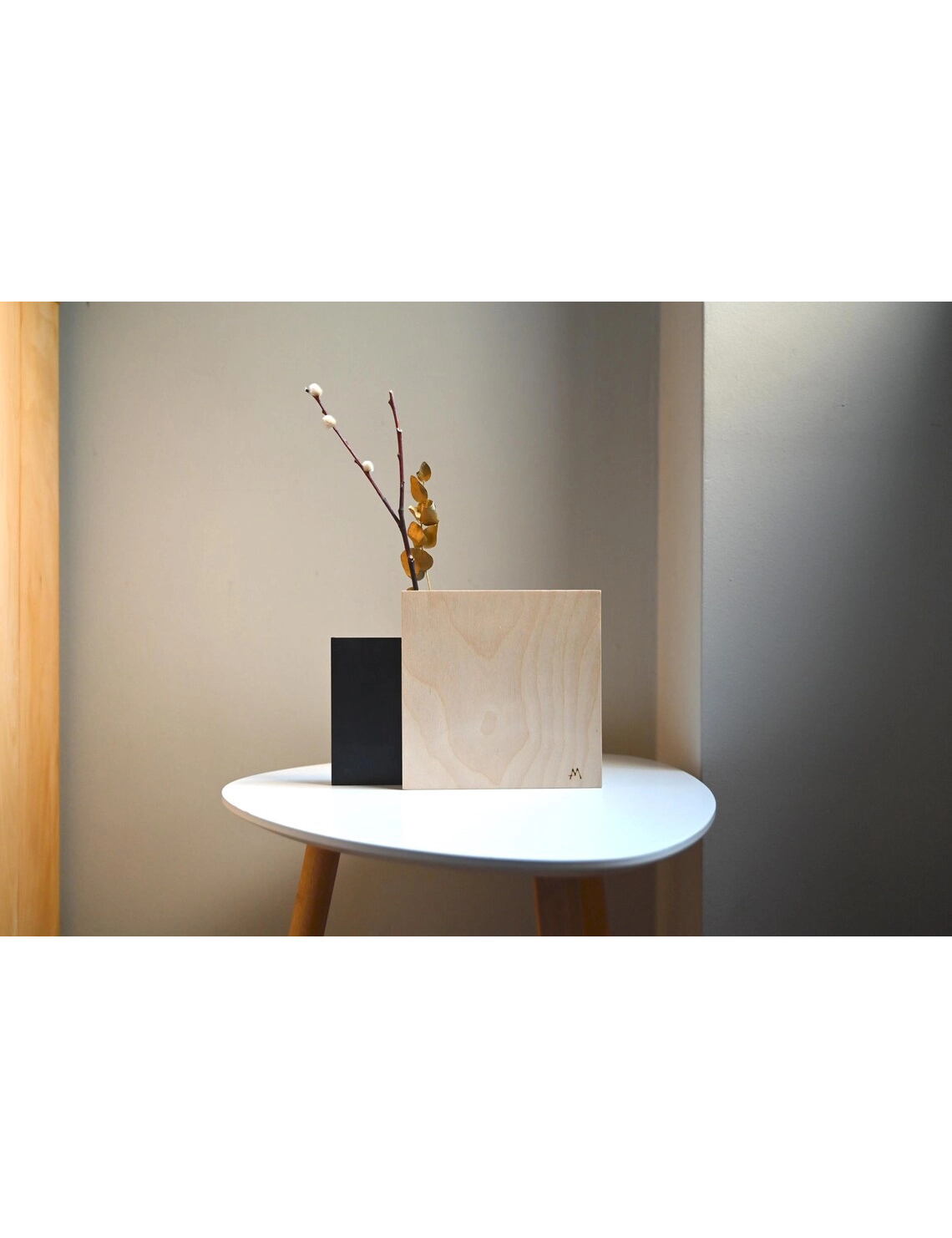 Elevate your interiors with this handcrafted Modern Black Geometric Wooden Vase by Krafted Kingdom, inspired by the minimalist elegance of mid-century design. With its square profile, sleek satin-black finish, and sharp geometric edges, it’s a statement piece for lovers of Nordic aesthetics.