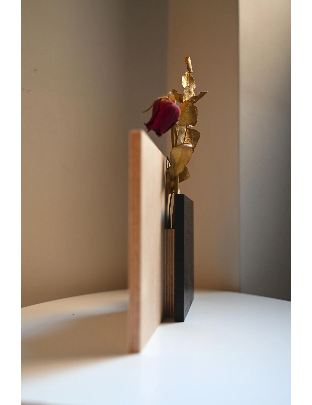 Expertly crafted from premium-quality plywood, this vase showcases a unique form ideal for dried flowers or sculptural branches. Each piece is individually hand-painted in rich black satin and sealed with a water-based finish to preserve the wood’s natural texture while offering a chic, contemporary look. Please note: this vase is not water-resistant and intended for dry floral arrangements only.