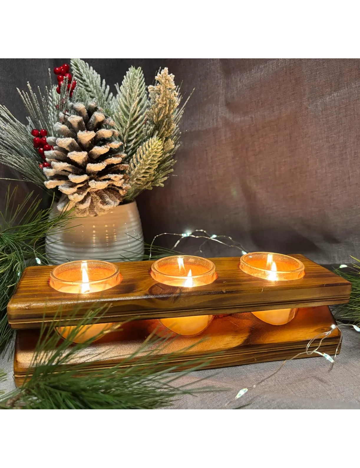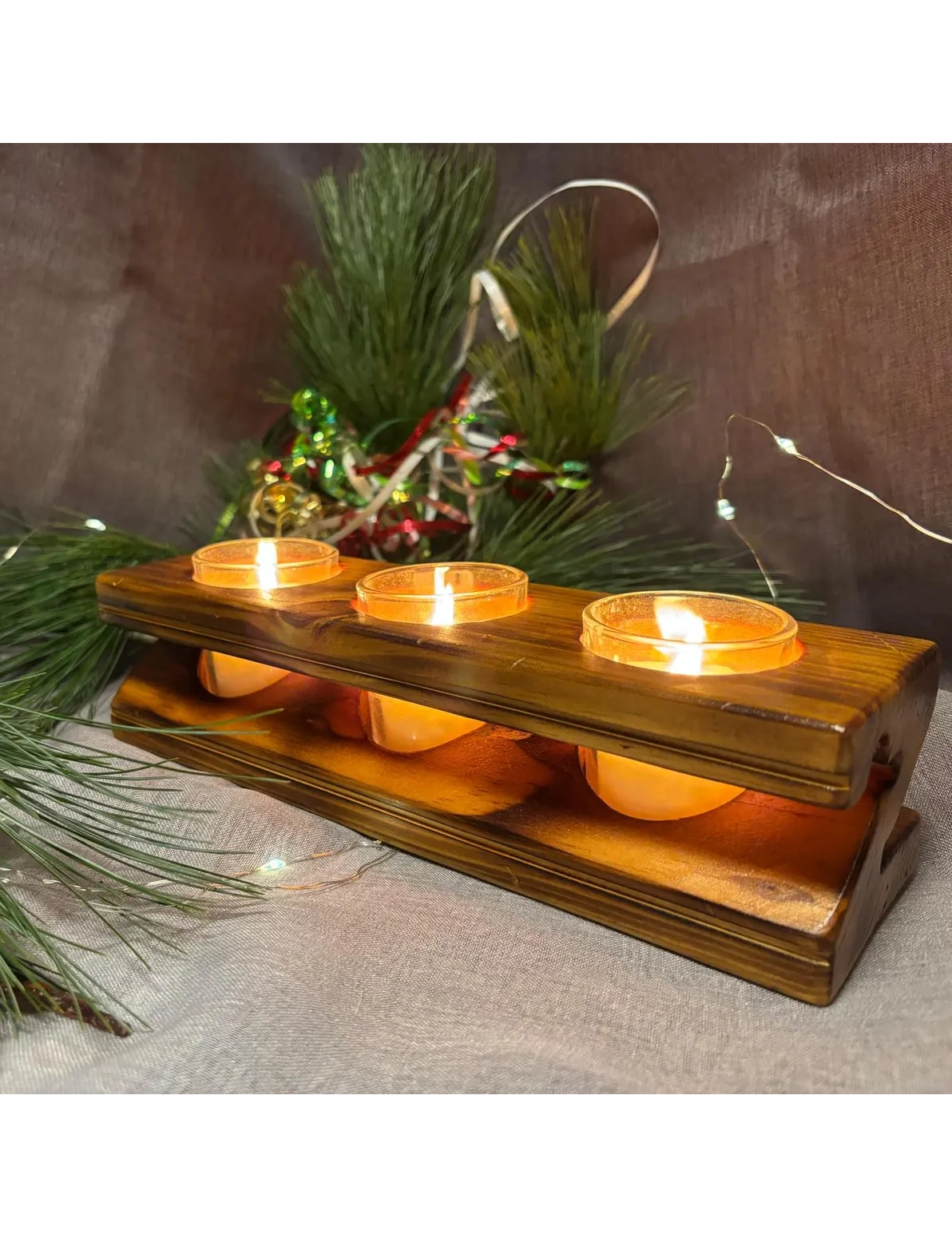 Crafted from pine wood, this handmade candle holder carries the warmth and character of history. Each piece is individually cut, shaped, and finished to showcase its unique grain, age marks, and rustic texture—making every holder truly one of a kind.