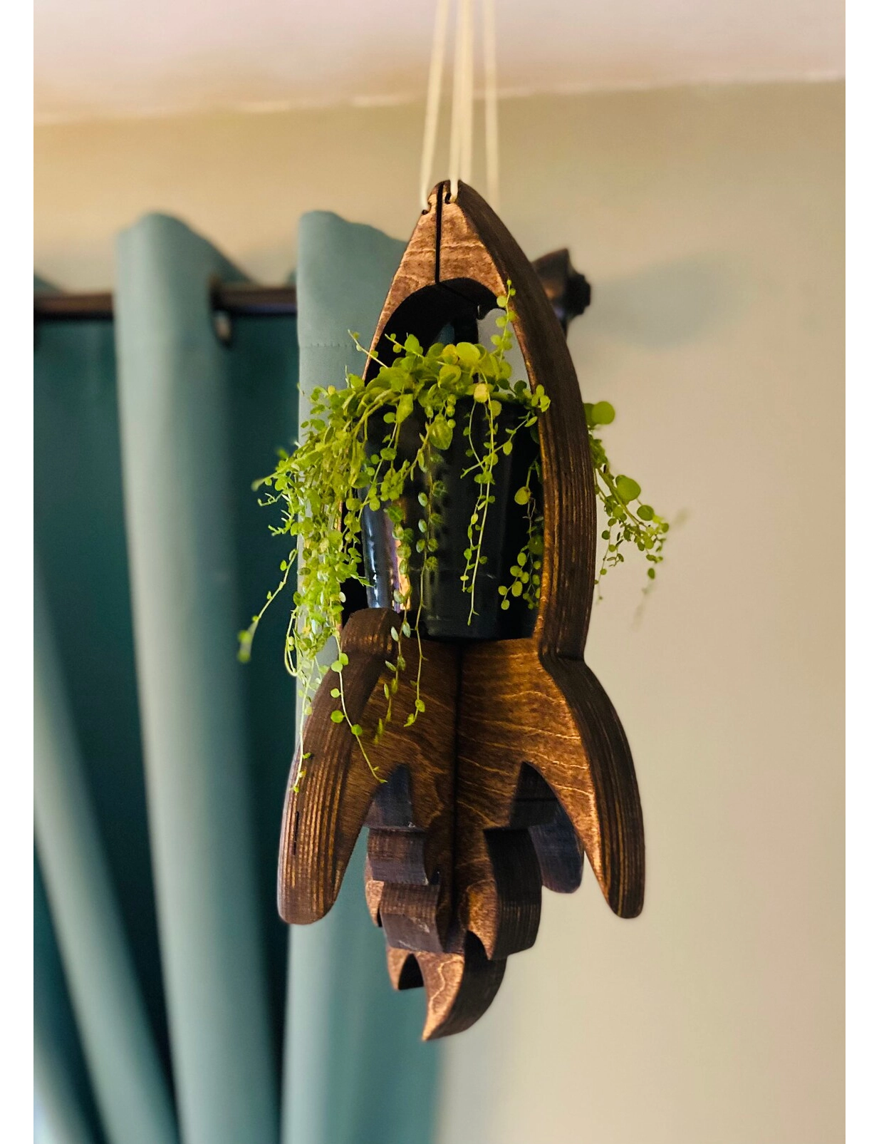 Ready for liftoff? The Rocket Wooden Plant Hanger by Krafted Kingdom brings whimsical charm and handcrafted quality together in one stellar decor piece. Designed for plant pots, this fun, space-inspired hanger adds playful energy to any room—perfect for kids’ spaces, nurseries, or any home that loves a bit of creative flair.