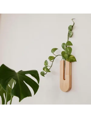 Each vase is carefully handmade using durable plywood, finished with a water-based metallic acrylic paint for a sleek yet earthy sheen. With a slim, geometric silhouette, it’s ideal for displaying dried florals or delicate stems and adds a vertical design statement to narrow wall spaces. A protective clear coat ensures long-lasting quality.