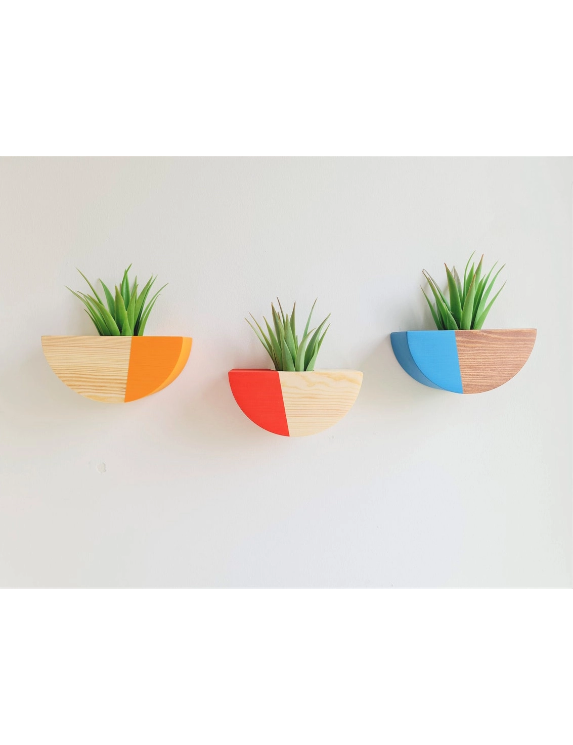 Elevate your wall decor with this Set of 3 Wooden Wall Planters, crafted in a minimalist half-circle shape that embodies the simplicity of Japanese and Scandinavian design. These planters are perfect for displaying air plants, faux greenery, or even small candles—offering a unique fusion of function and beauty for any indoor setting.