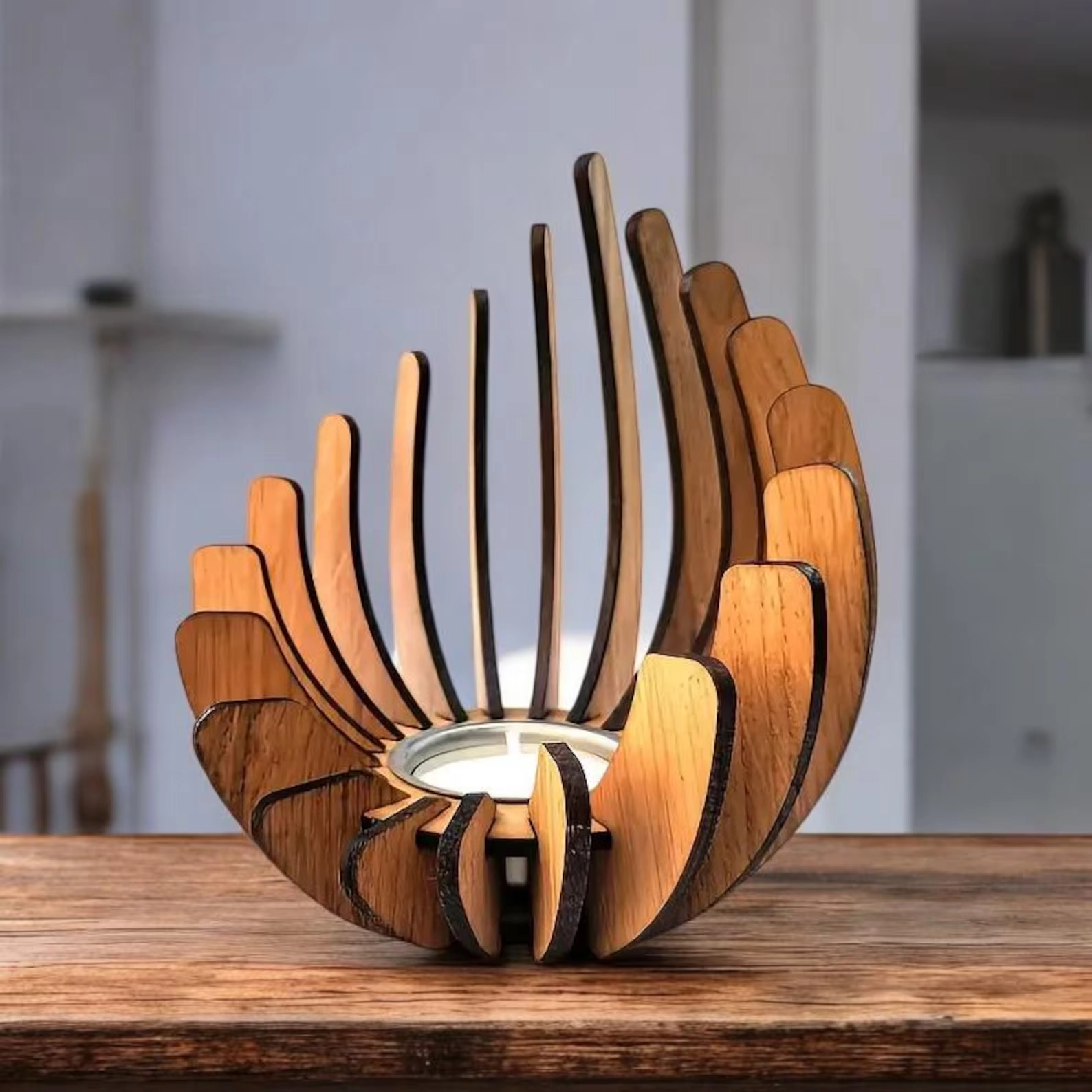 Bring peaceful charm and nature-inspired beauty into your space with our Handmade Wooden Lotus Candle Holder. Designed to mimic the gentle bloom of a lotus flower, each piece is handcrafted using precision laser-cut wood panels that layer together to form a stunning, functional centerpiece.