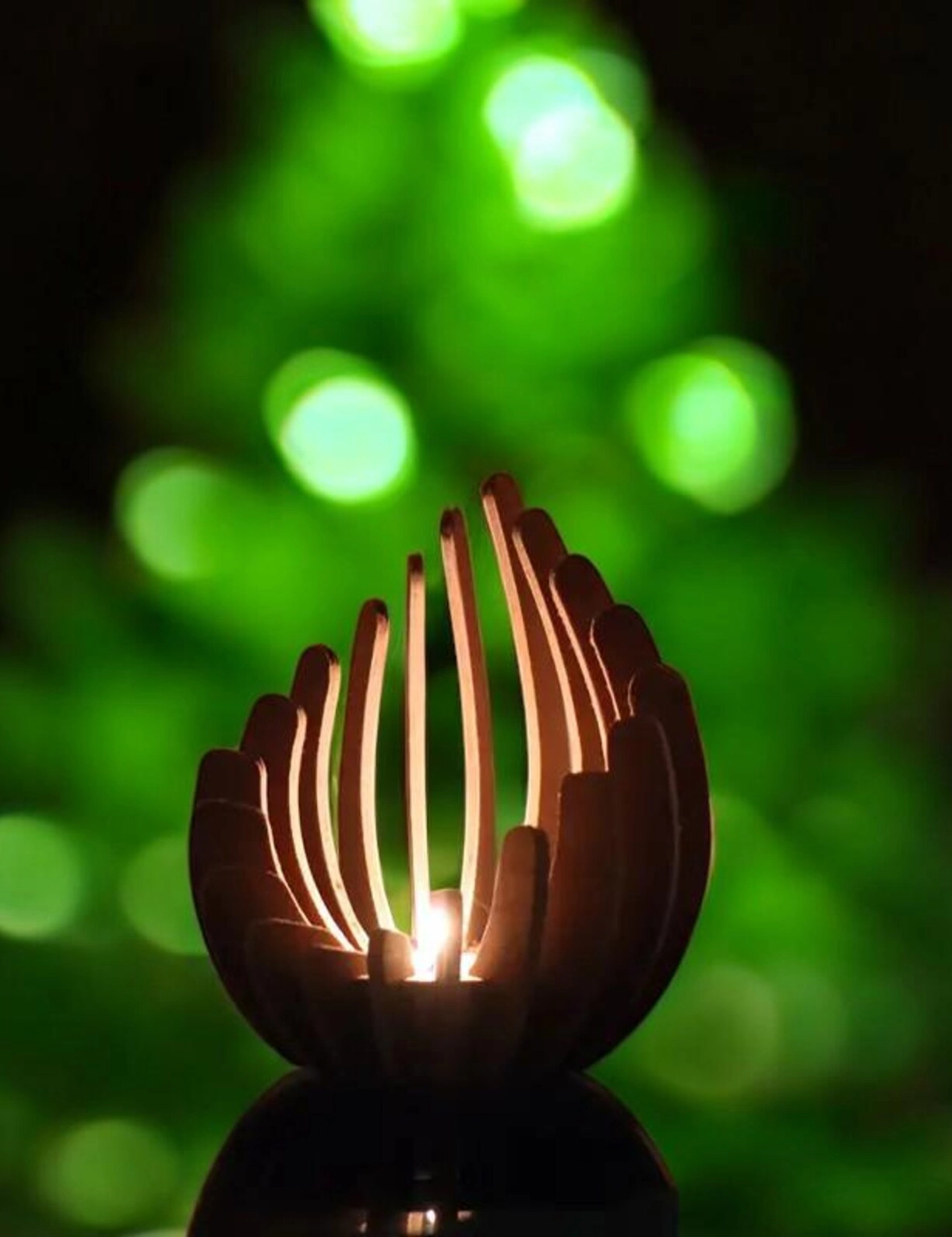 Crafted from sustainable, chemical-free wood, this candle holder is lightweight, smooth-finished, and easy to assemble. Its artistic design and eco-conscious construction make it a thoughtful gift for spiritual milestones, birthdays, or simply elevating your mindful moments.