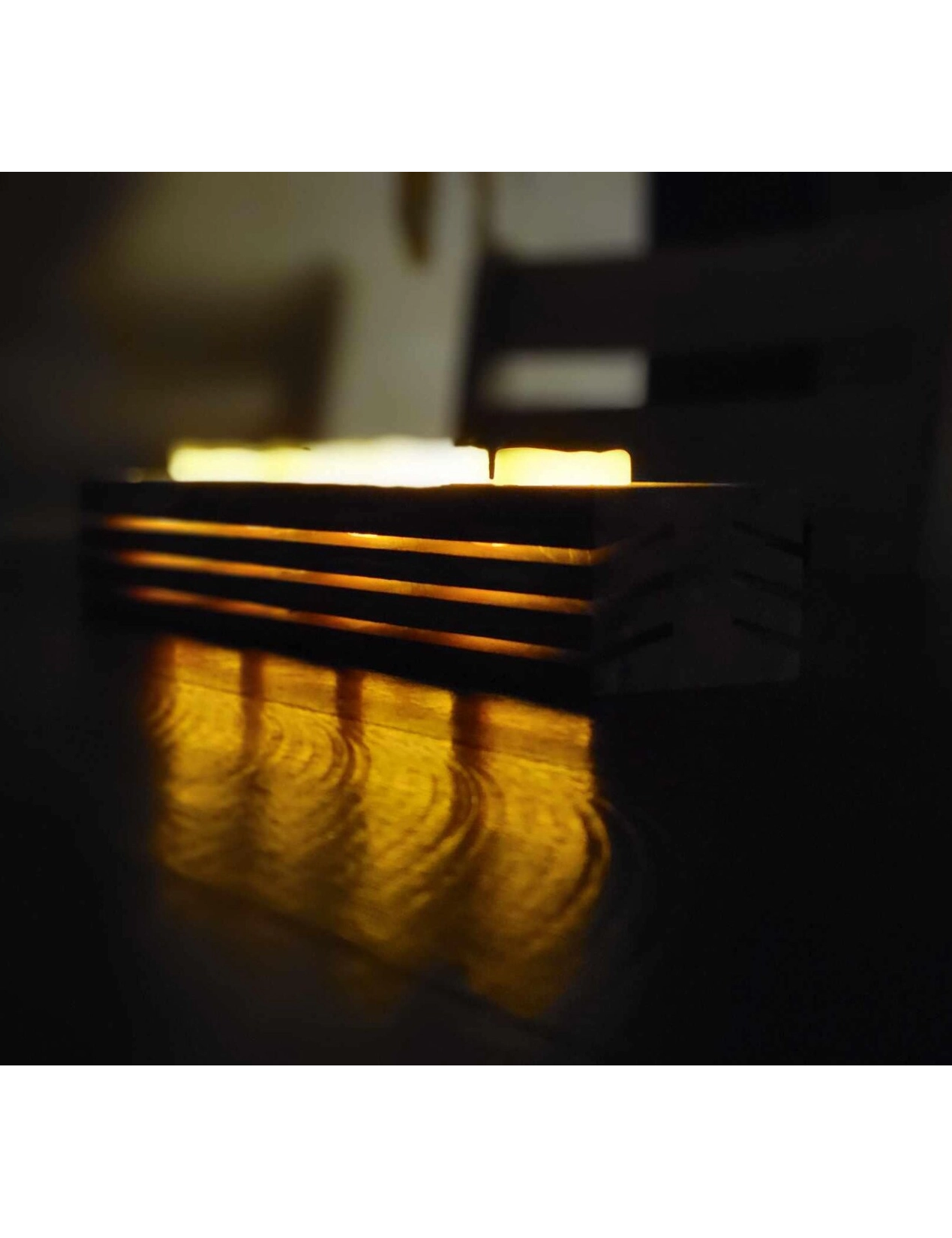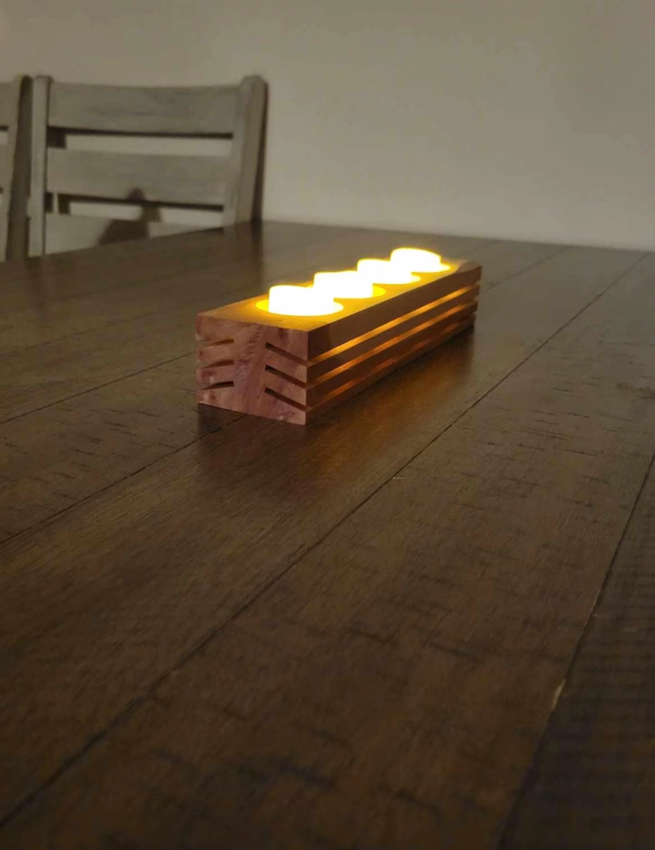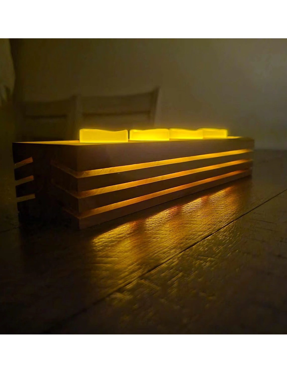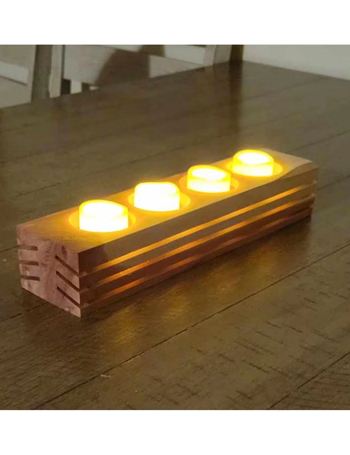Enhance your home with this handcrafted wooden votive candle holder made from aromatic red cedar. Designed to hold four flameless LED candles (Not included), this rustic centerpiece adds charm and warmth to any space. Its safe, flame-free glow makes it ideal for family homes, while its artisan craftsmanship makes it a unique and thoughtful gift for any occasion.