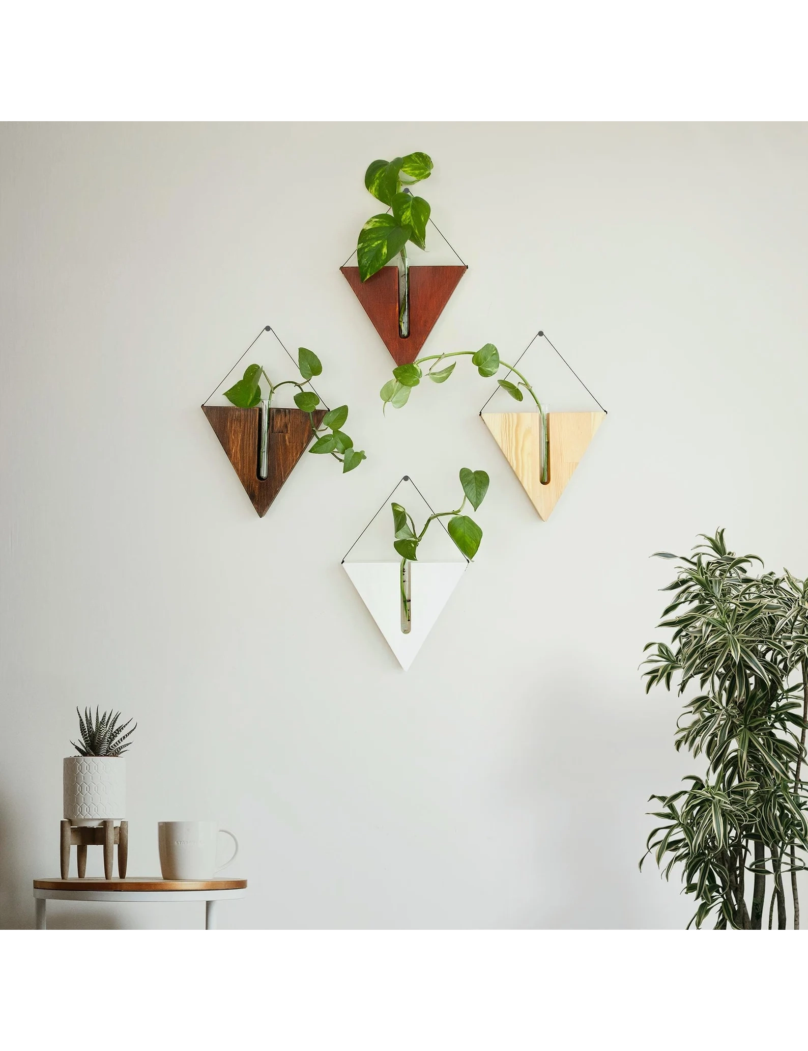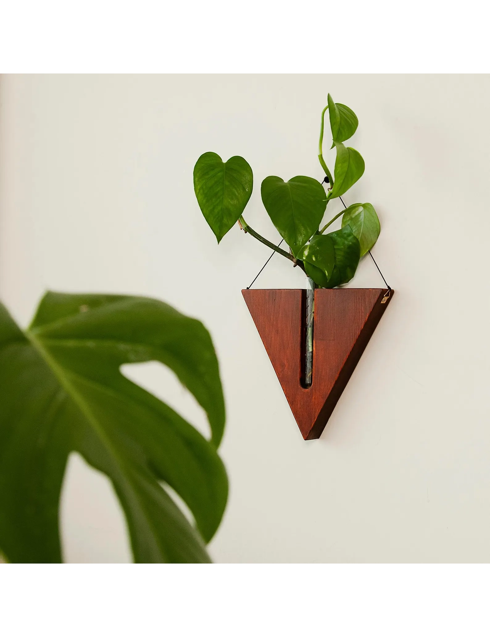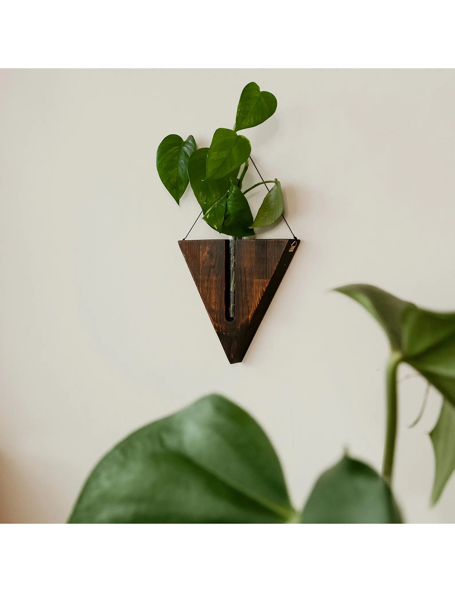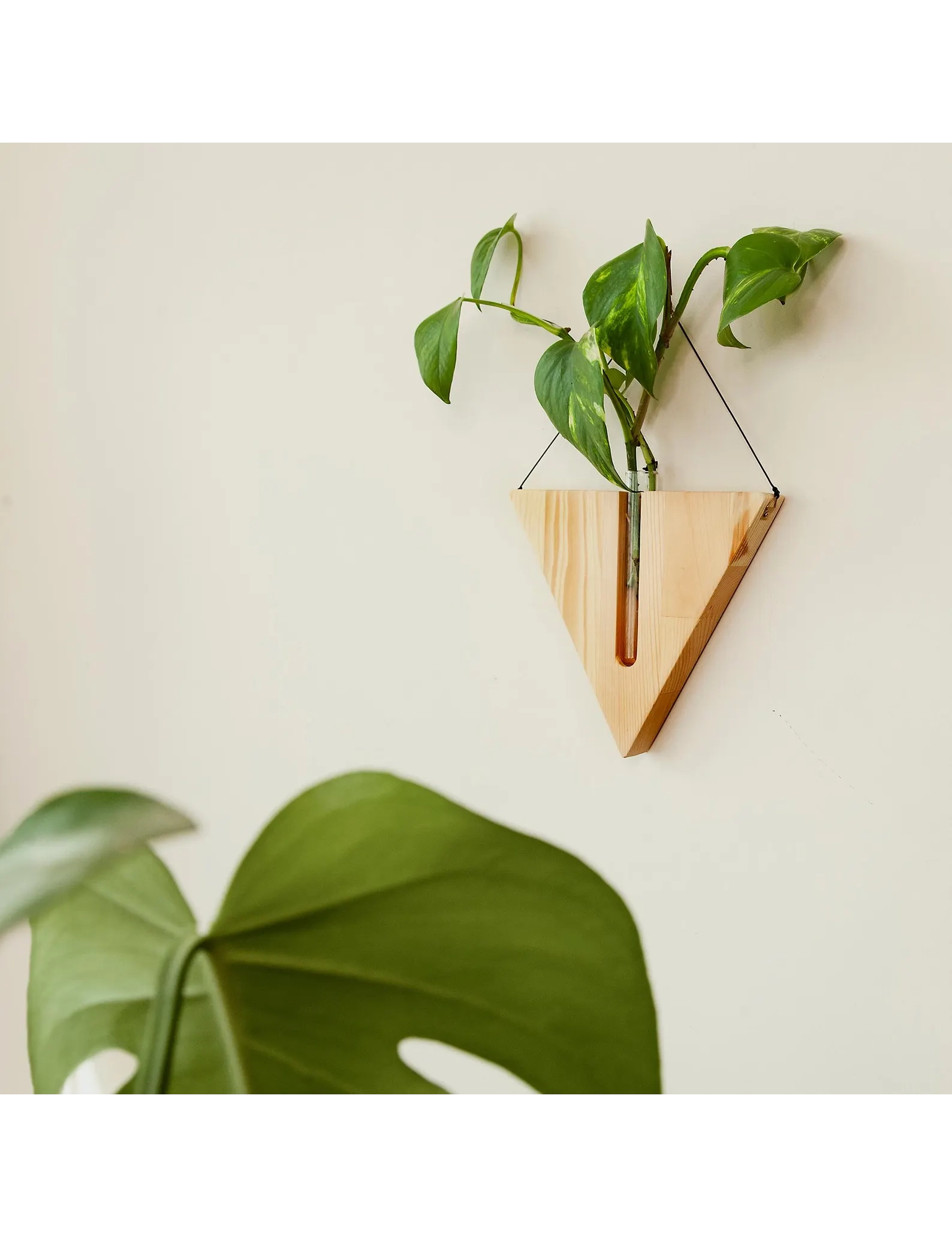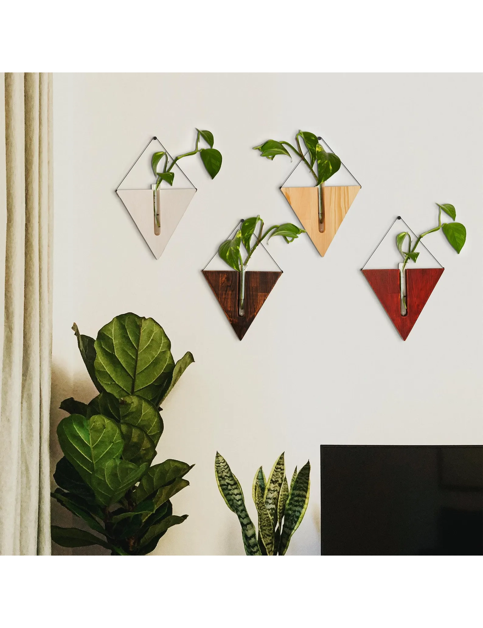 Each planter is handmade from solid wood and comes with a clear glass test tube, perfect for nurturing plant cuttings or showcasing dried stems. The minimalist hanging design pairs beautifully with rustic, farmhouse, or boho interiors—ideal for entryways, kitchens, or cozy corners.