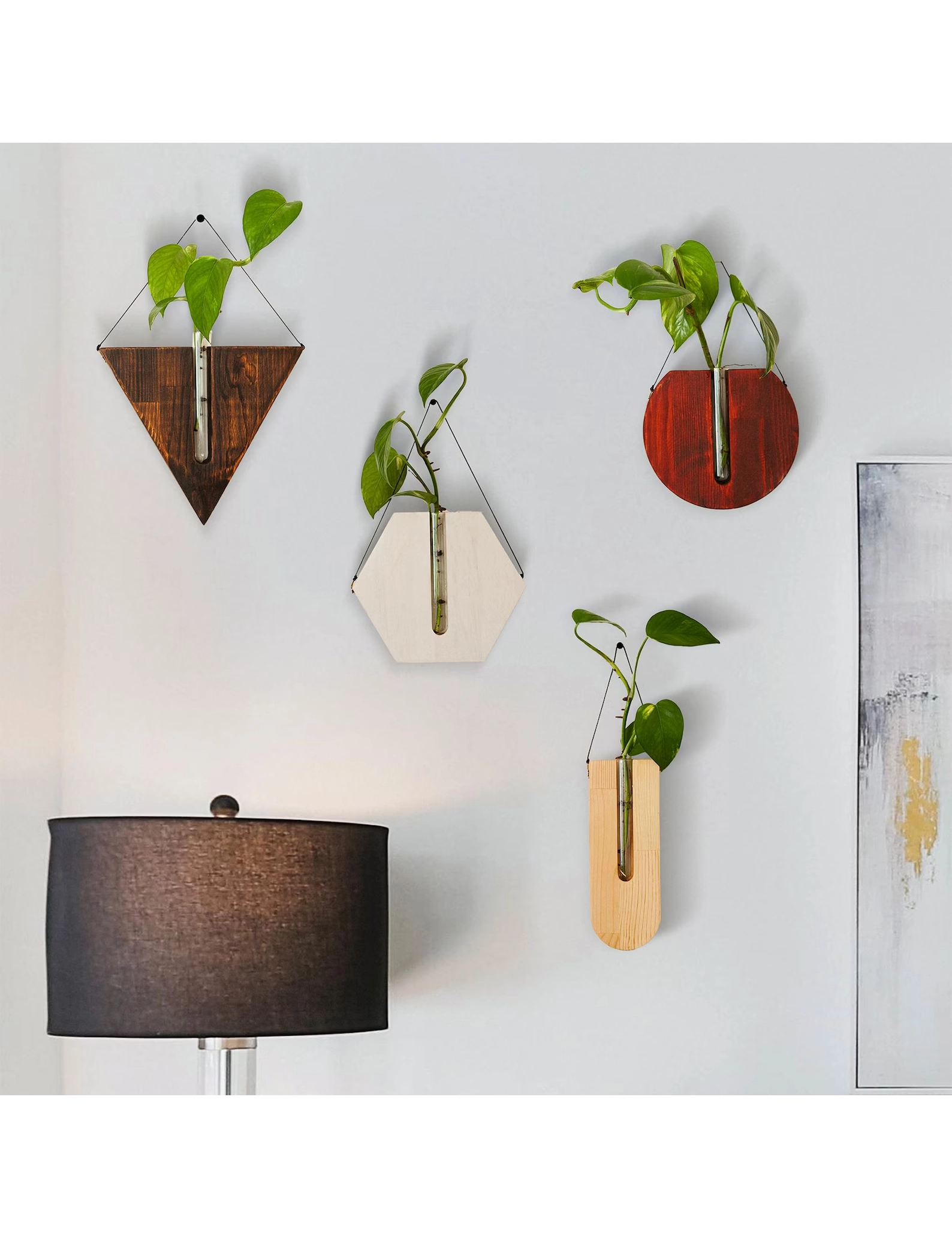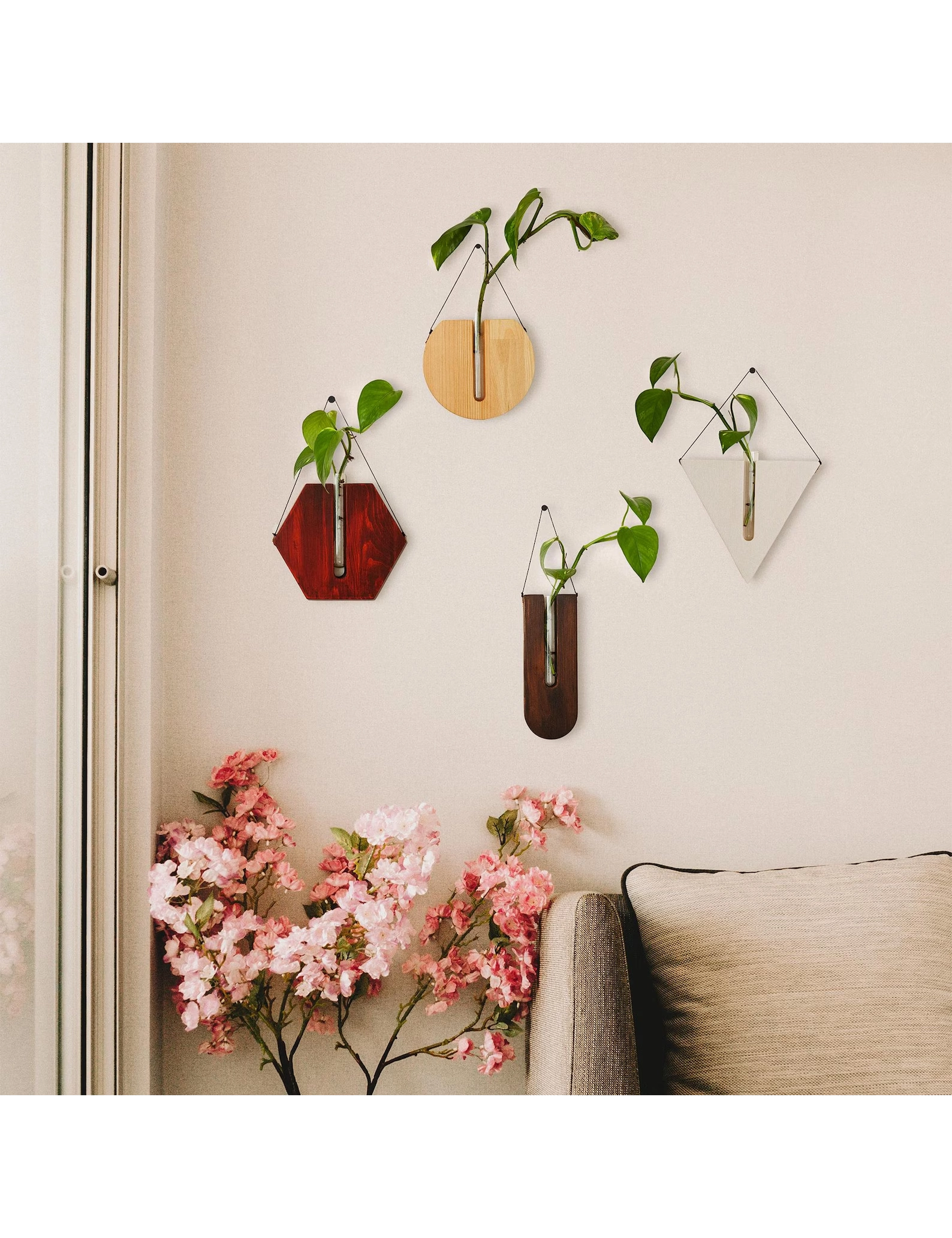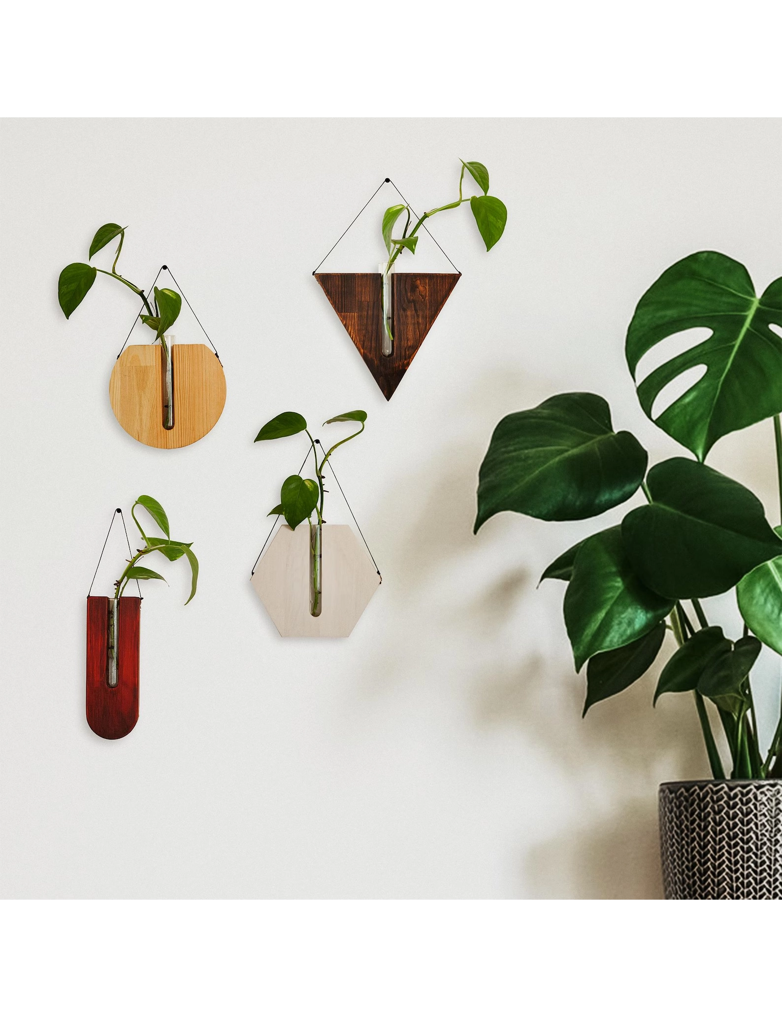 Bring earthy elegance to your walls with this Set of 4 Wooden Wall Mounted Vases by Krafted Kingdom. Designed as a rustic propagation station, each vase combines handcrafted woodwork with minimalist style—perfect for displaying air plants, succulents, or water-propagating your favorite cuttings.