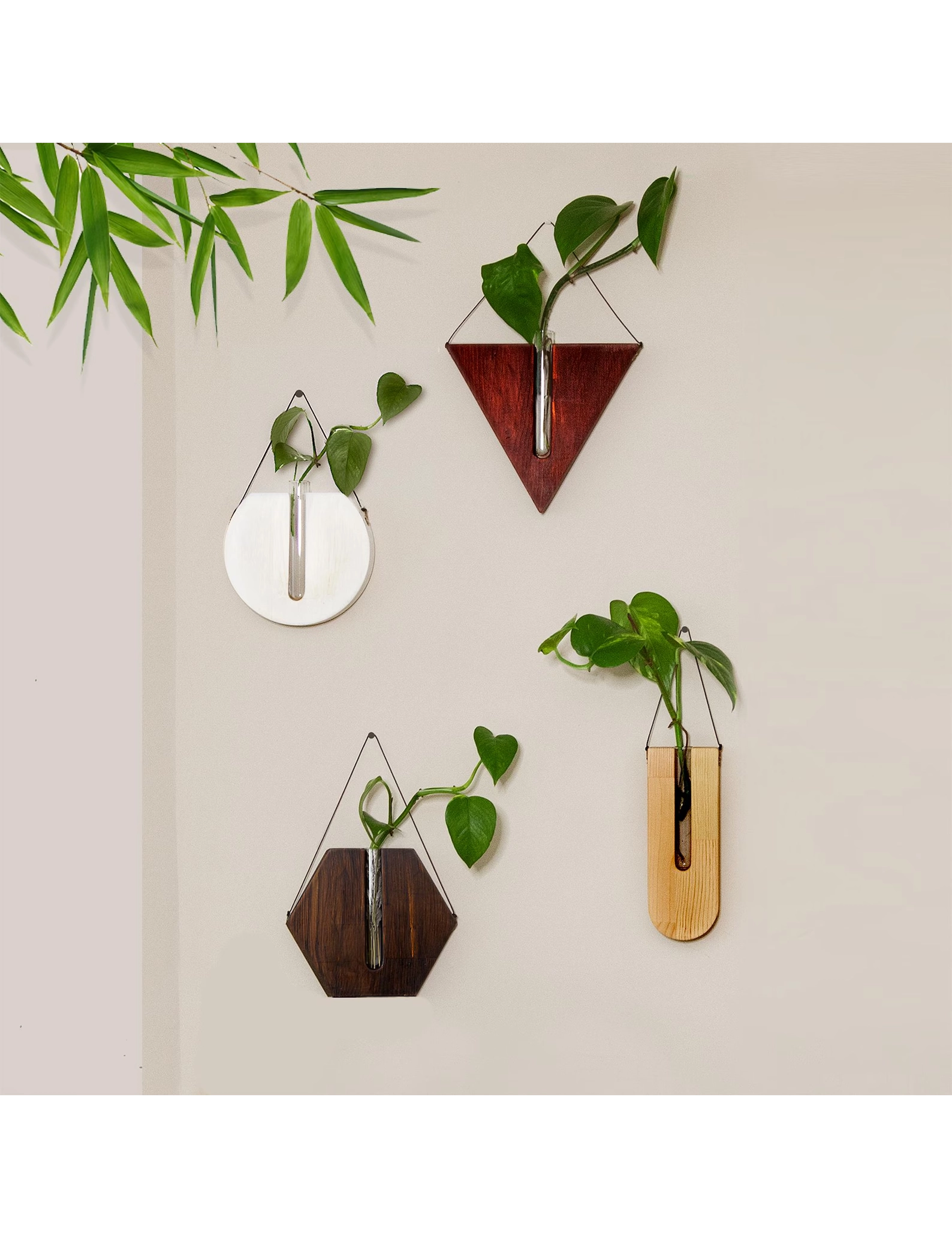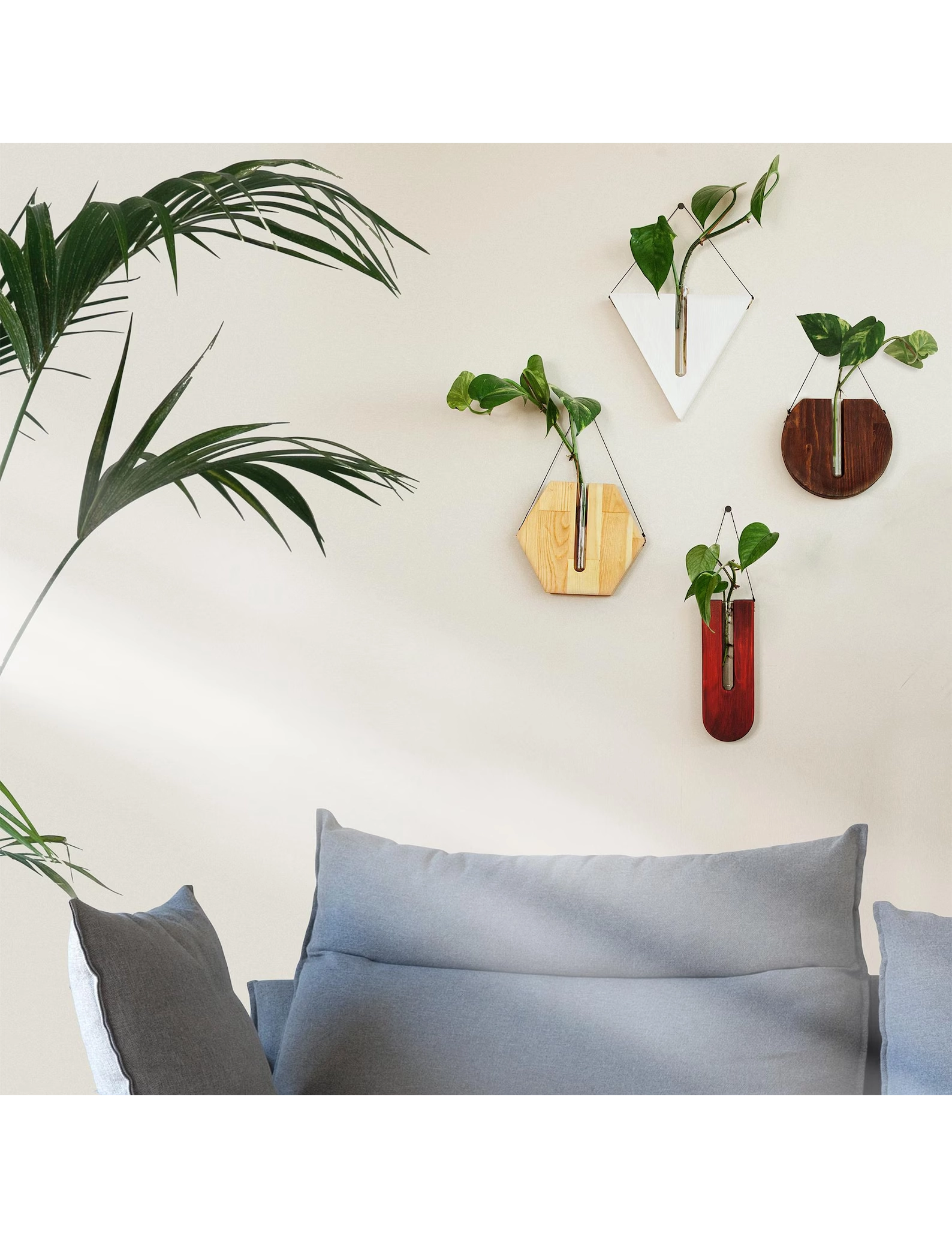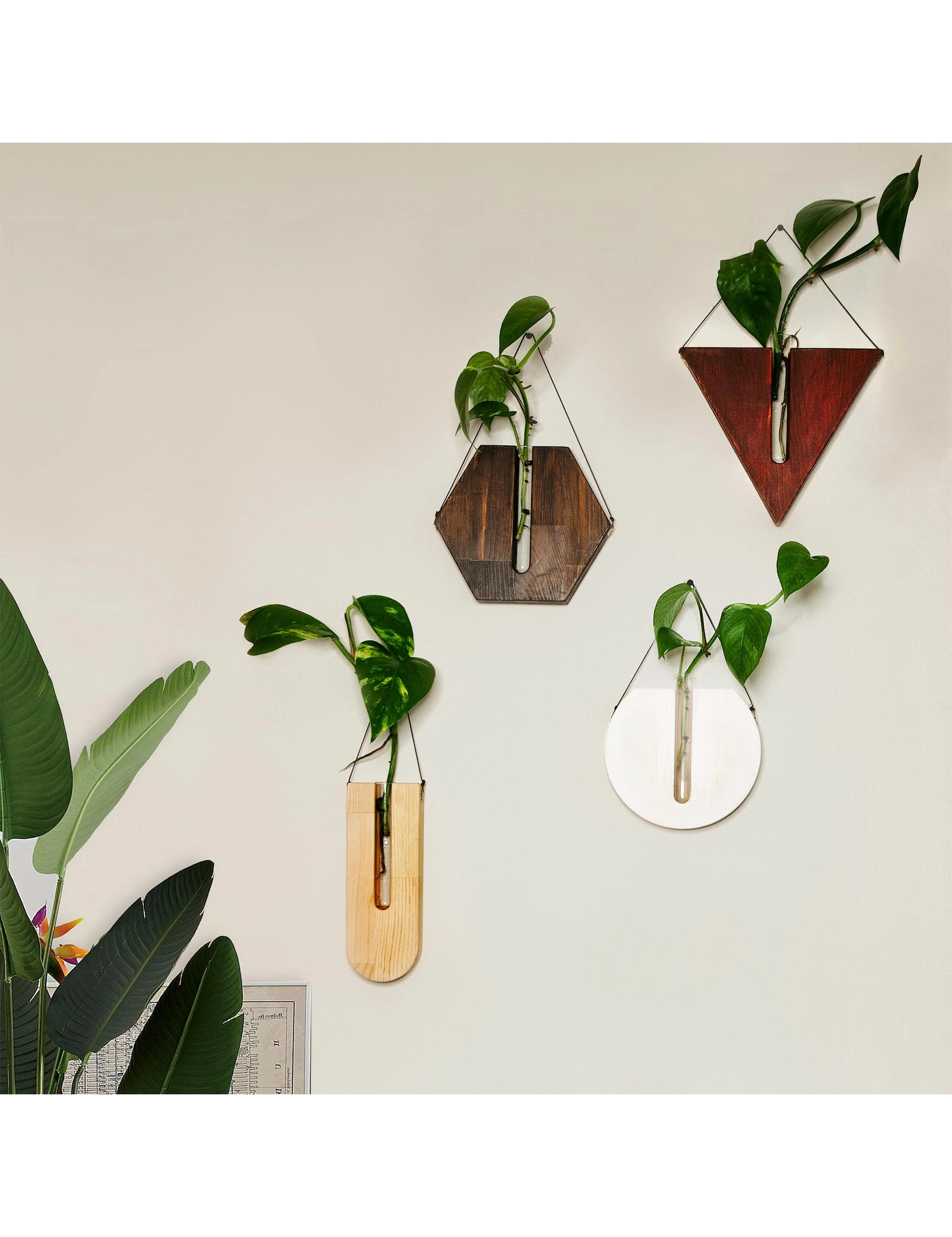 Each piece is carefully crafted from solid wood and includes a test tube for propagation. The simple wall-mounted design adds a warm, natural element to living rooms, kitchens, or bedrooms, while also serving as a stylish plant holder that fits into boho or farmhouse-inspired interiors.